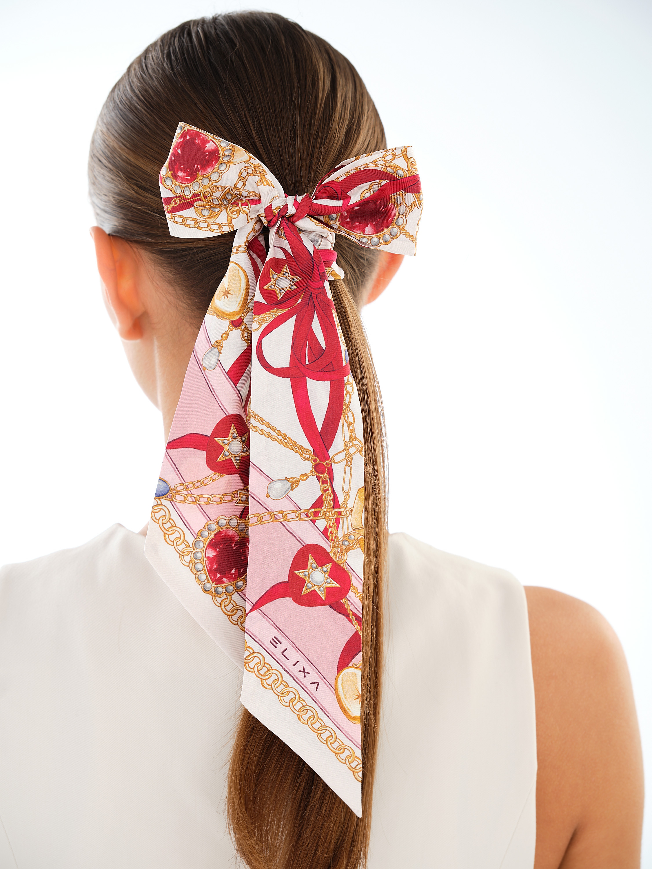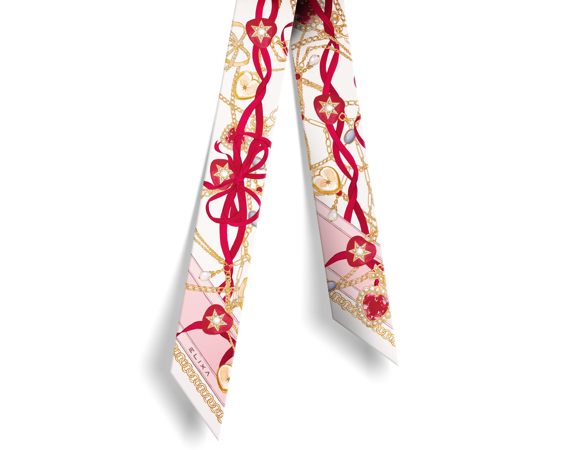 Harmonijne zestawienie kolorów czerwonego, rózowego i złotego nadaje szarfie elegancki i ponadczasowy charakter.