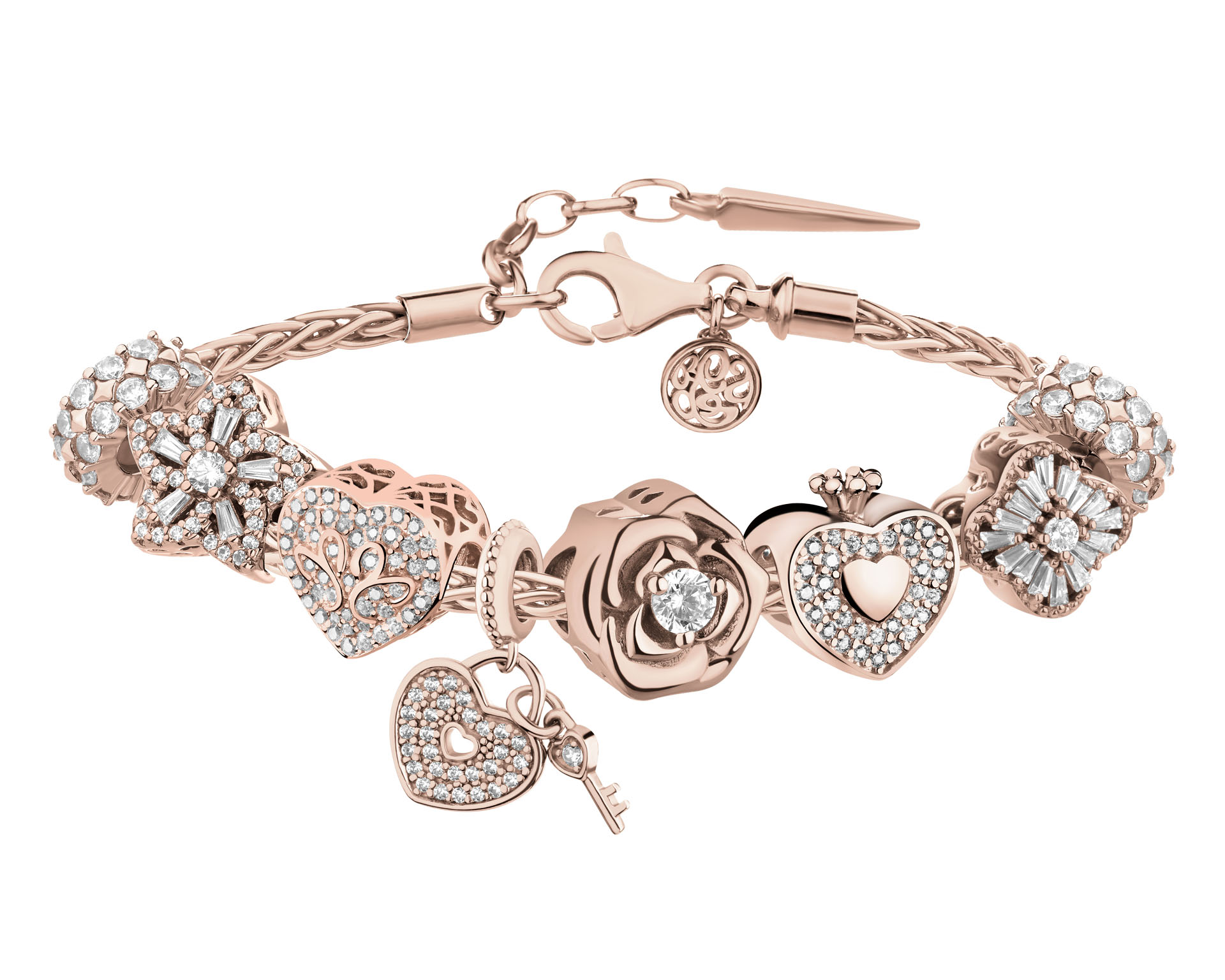 - Zawieszka srebrna beads z cyrkoniami - serce, kluczyk (AP540-6068)