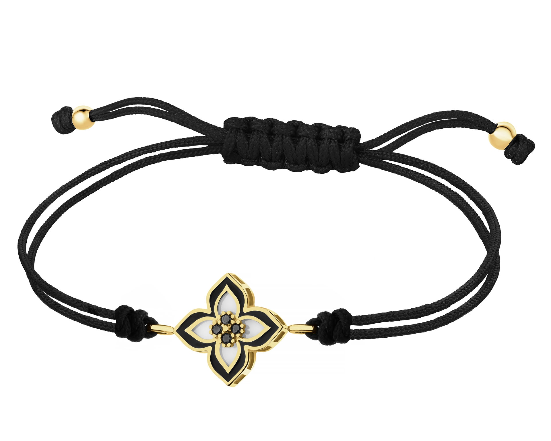 Bransoletka z emalią, masą perłową, cyrkoniami i elementami z żółtego złota - kwiat