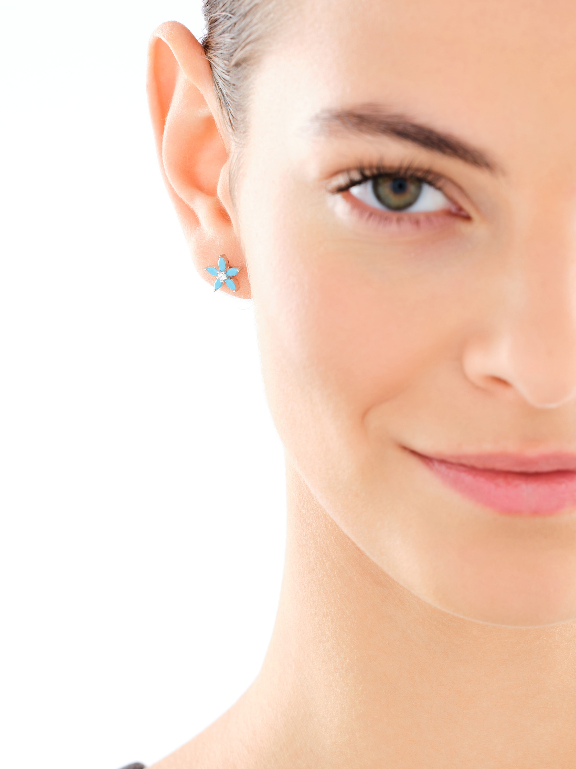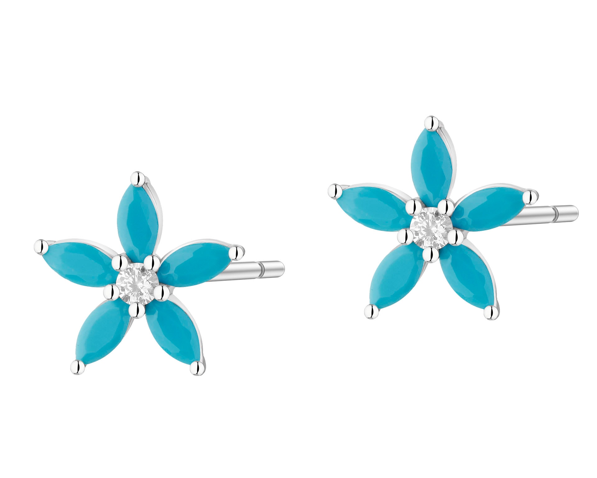 Naszyjnik srebrny z cyrkonią  i turkusami syntetycznymi – kwiat