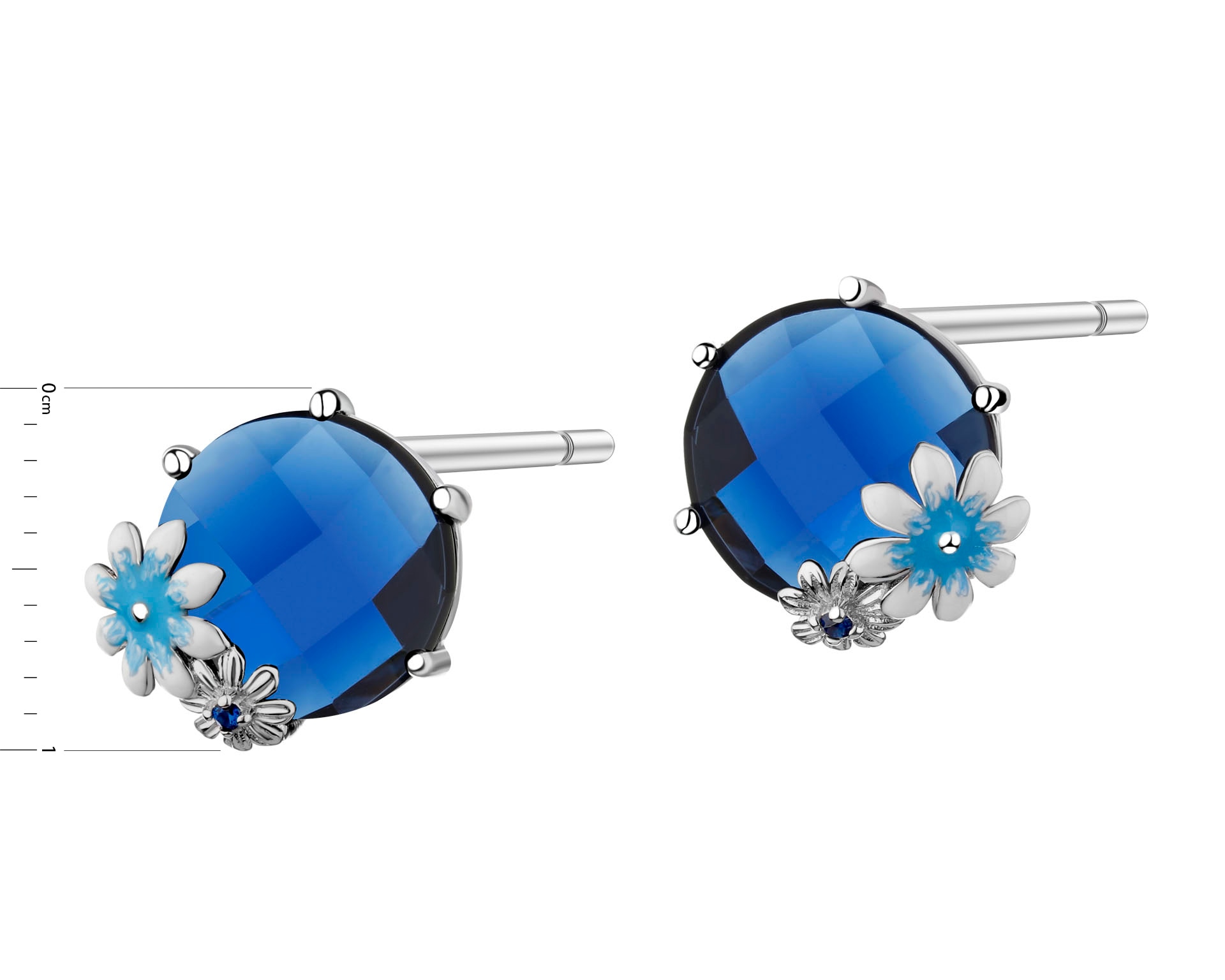 Zawieszka srebrna z cyrkonią, szlifowanym szkłem i emalią - kwiaty