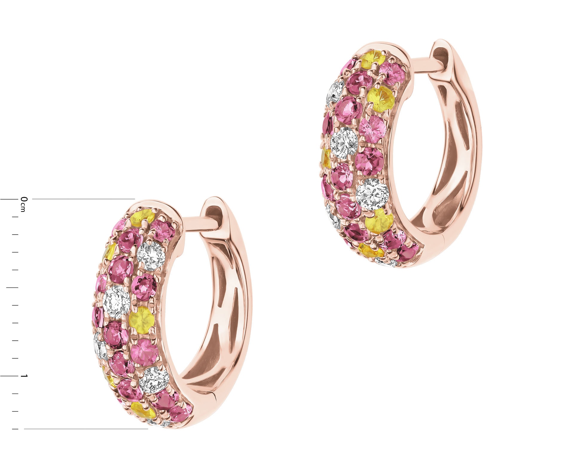 Kolczyki z różowego złota z brylantami, kamieniami szlachetnymi i ozdobnymi - koła - próba 585