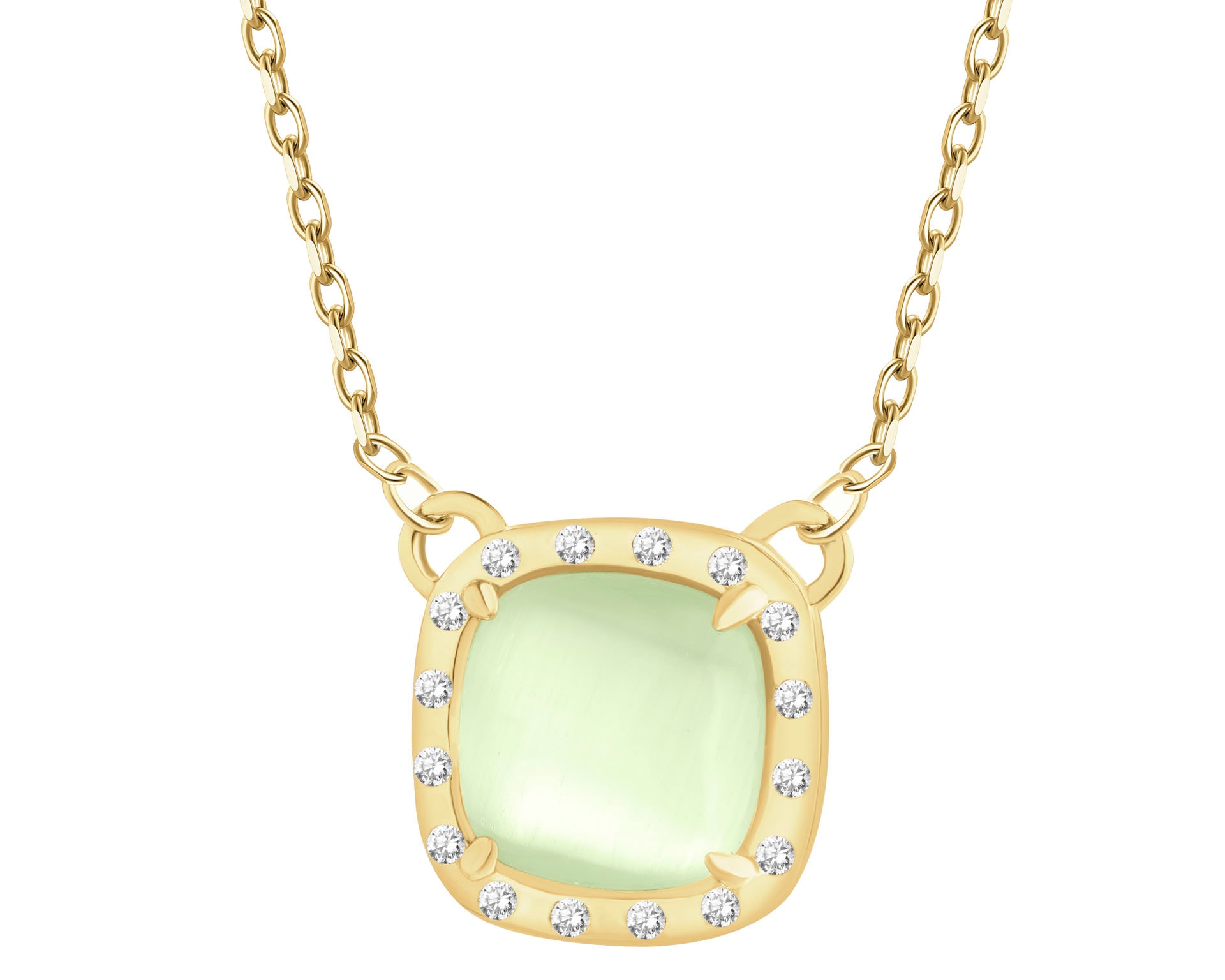 Naszyjnik srebrny z cyrkoniami i kamieniem jubilerskim z efektem kociego oka - kwadrat