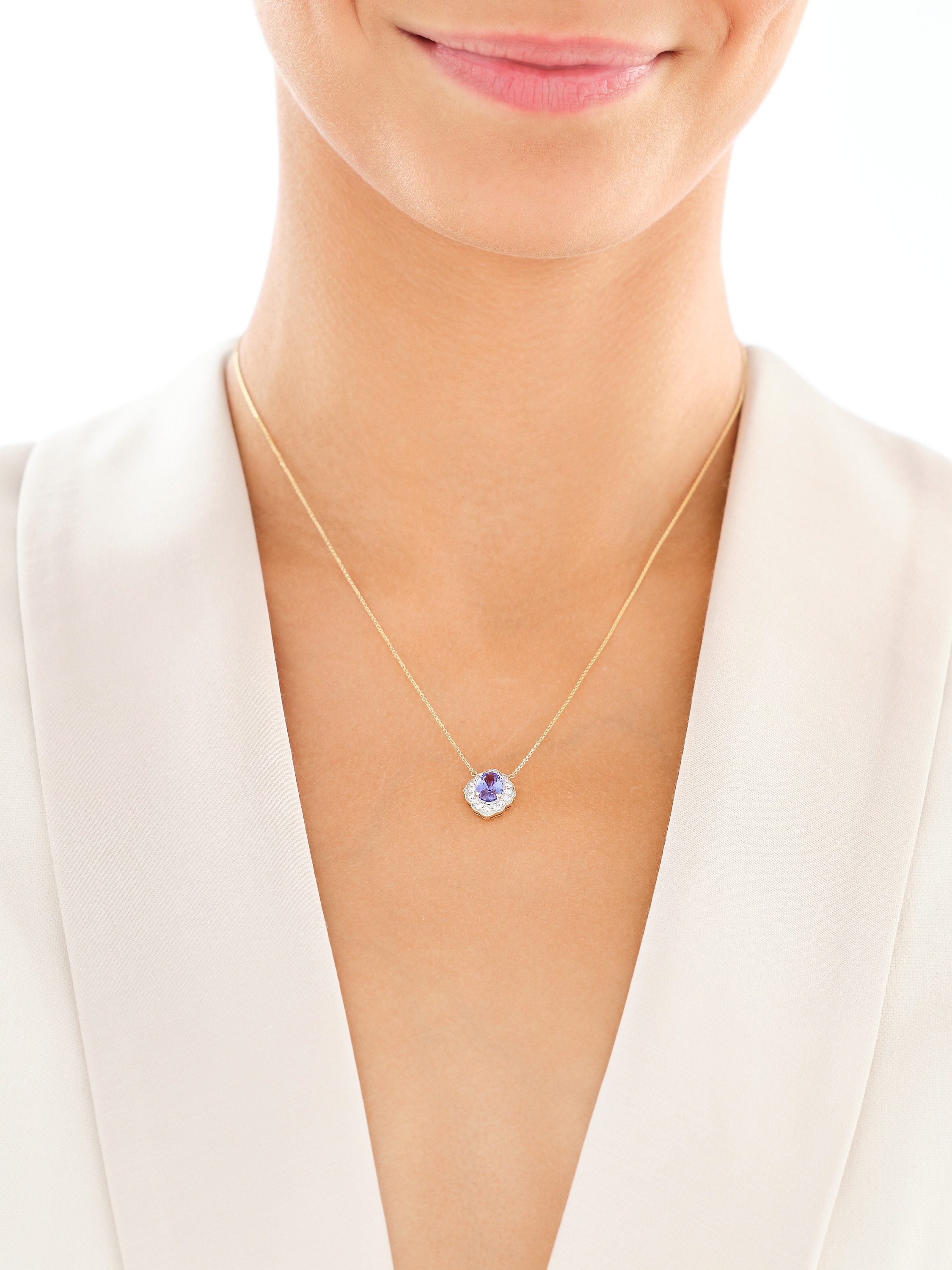 Odcień tanzanitu w poszczególnych zawieszkach może różnić się od tego prezentowanego na zdjęciu.