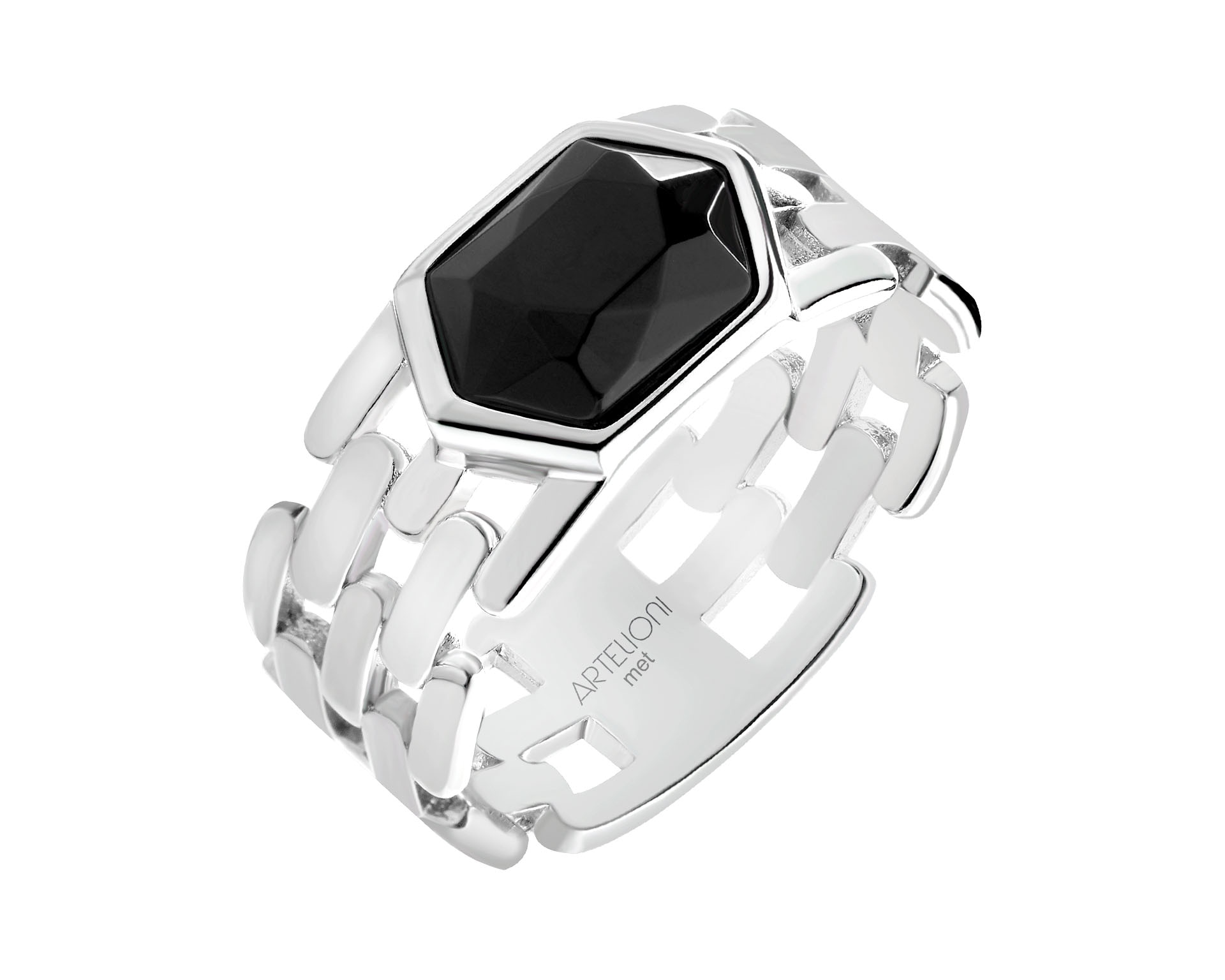 Pierścionek z mosiądzu rodowany z agatem
