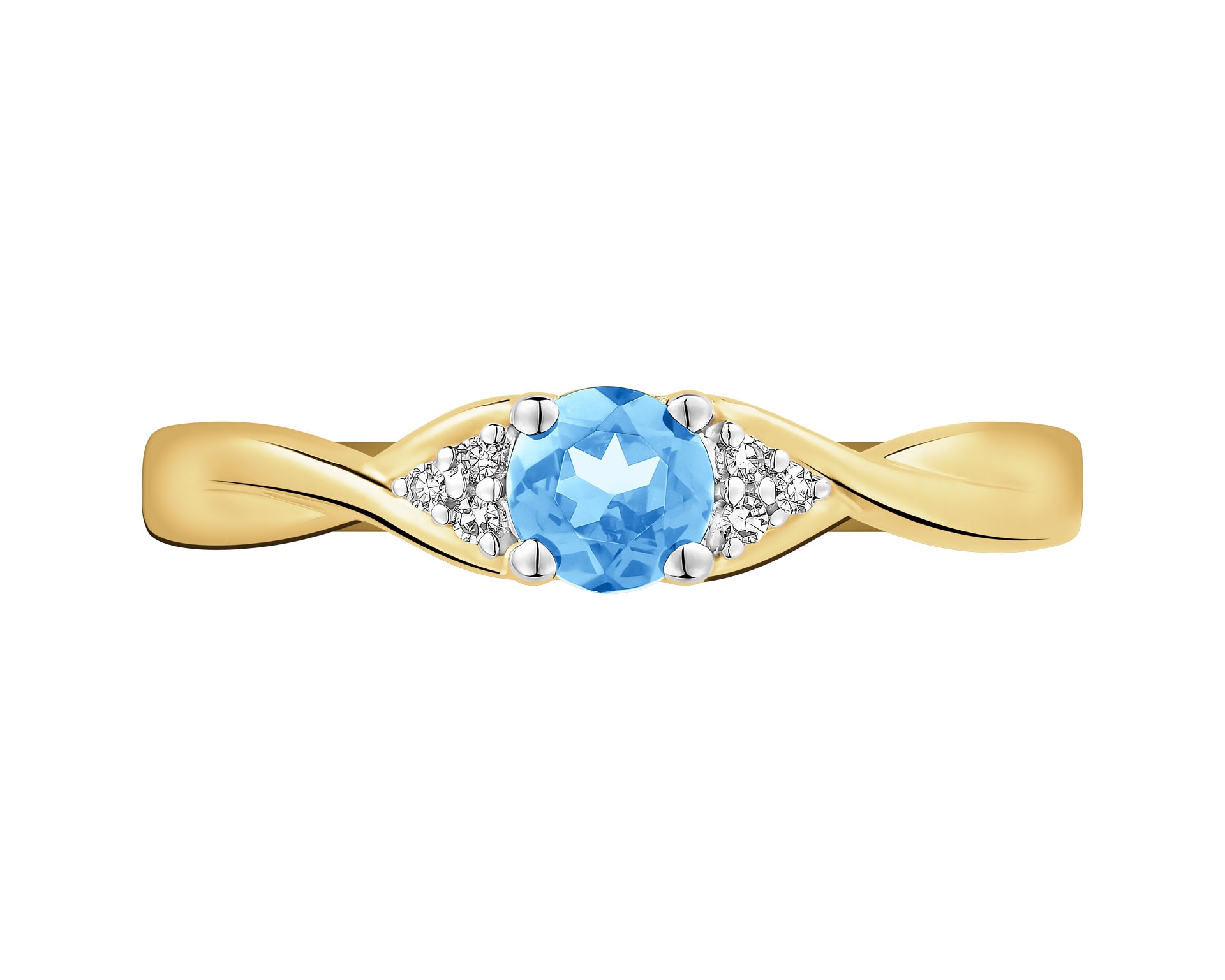 Pierścionek z żółtego złota z diamentami i topazem - próba 375
