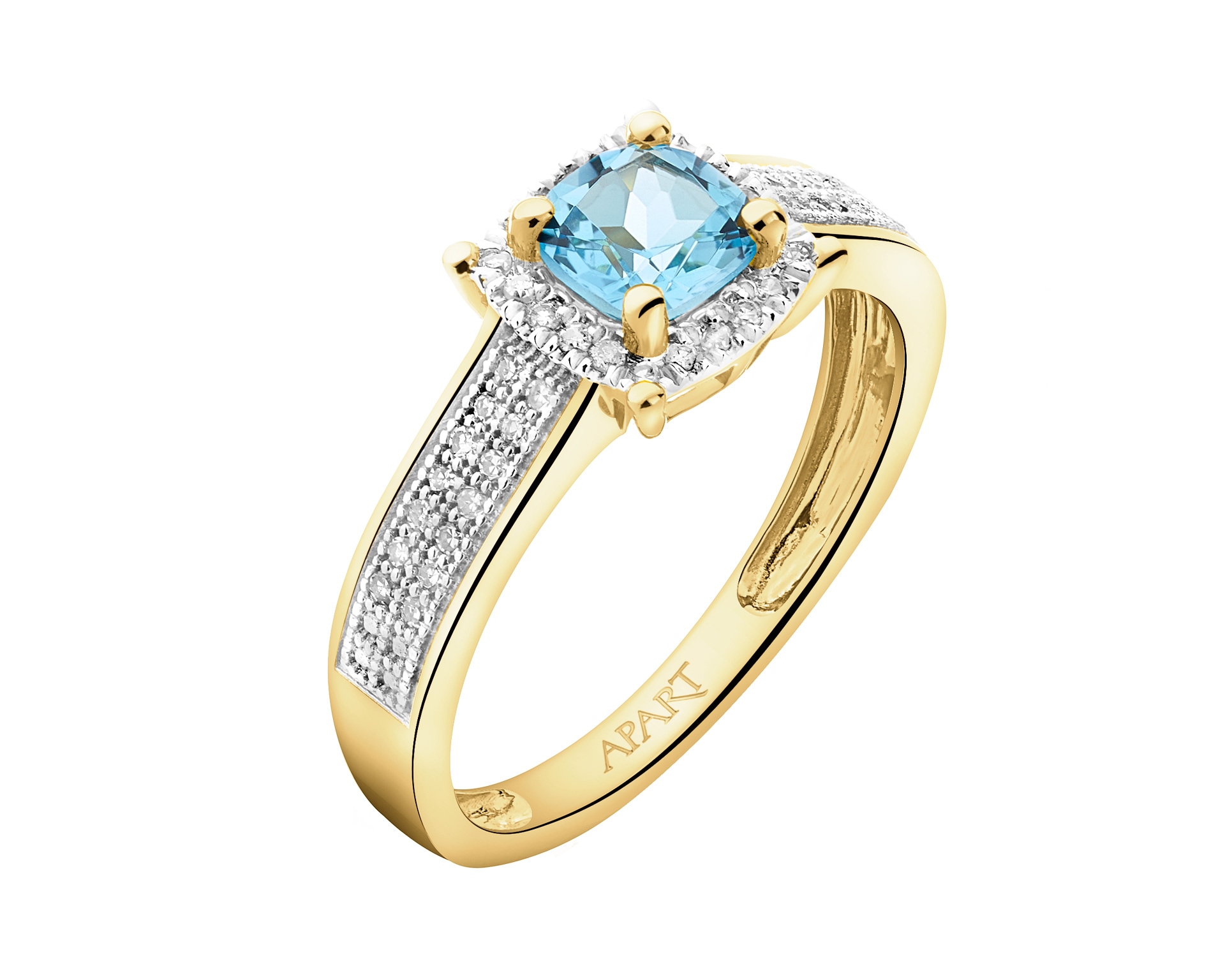 Pierścionek z żółtego złota z diamentami i topazem - próba 585