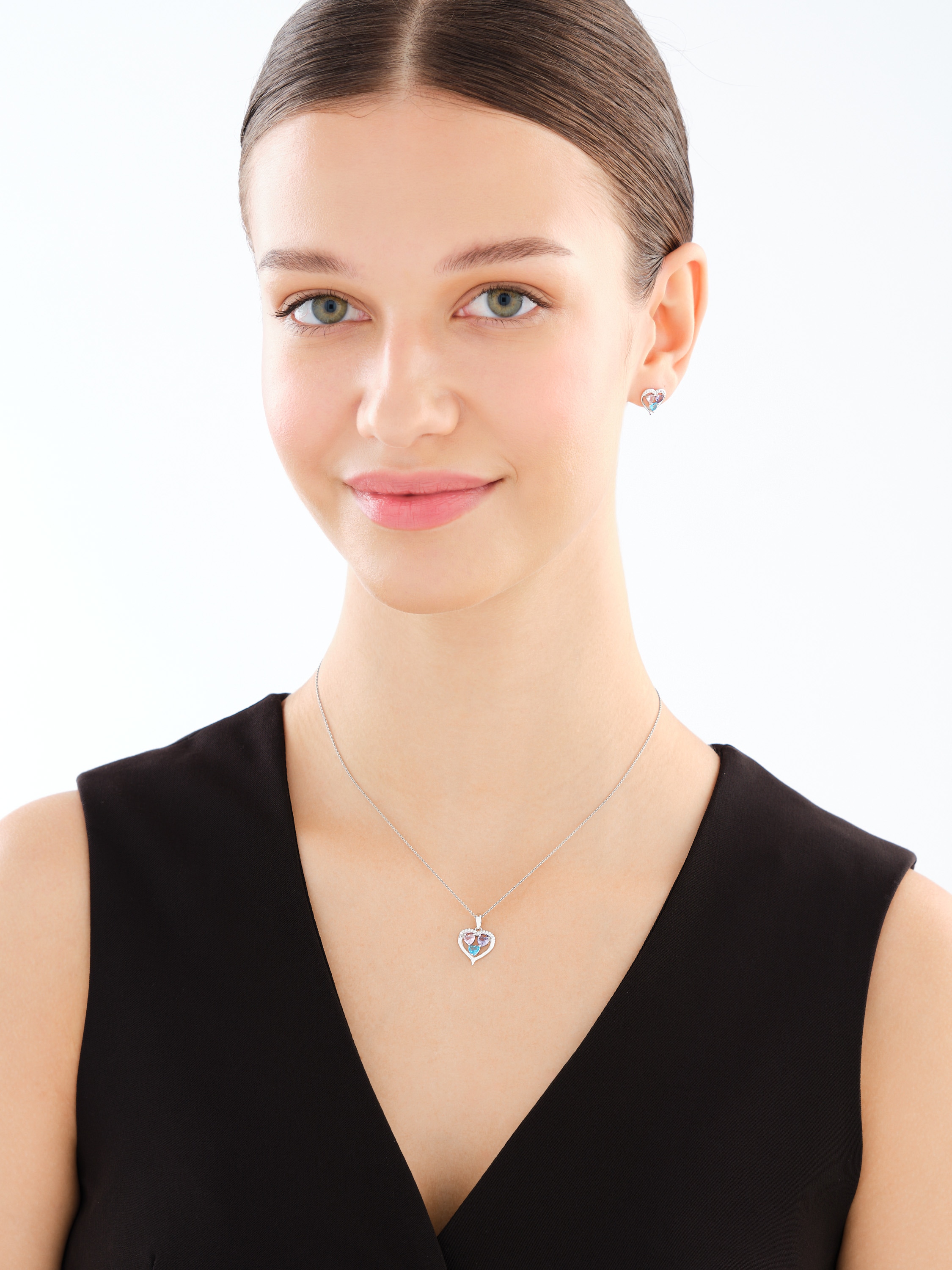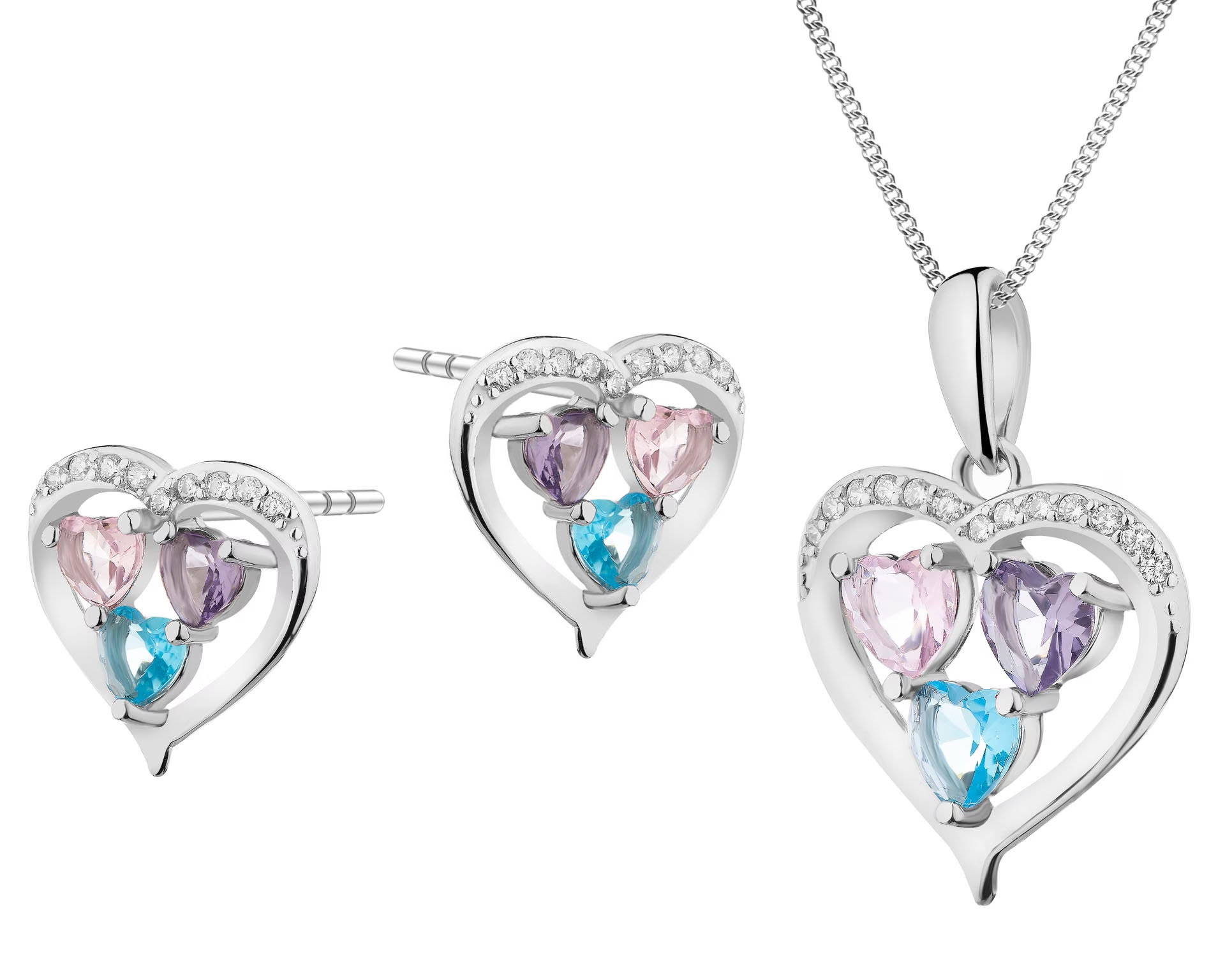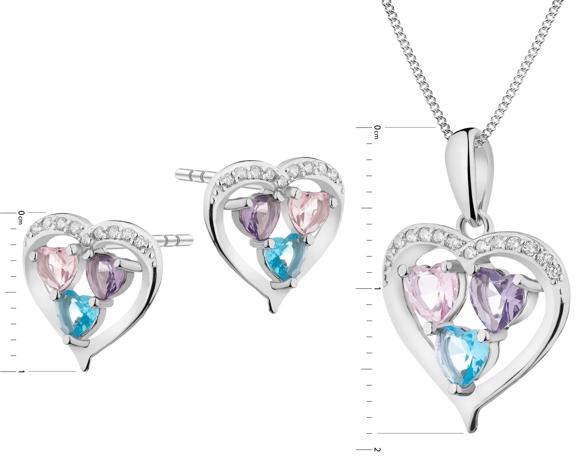 Srebrne kolczyki i zawieszka z cyrkoniami - komplet - serca