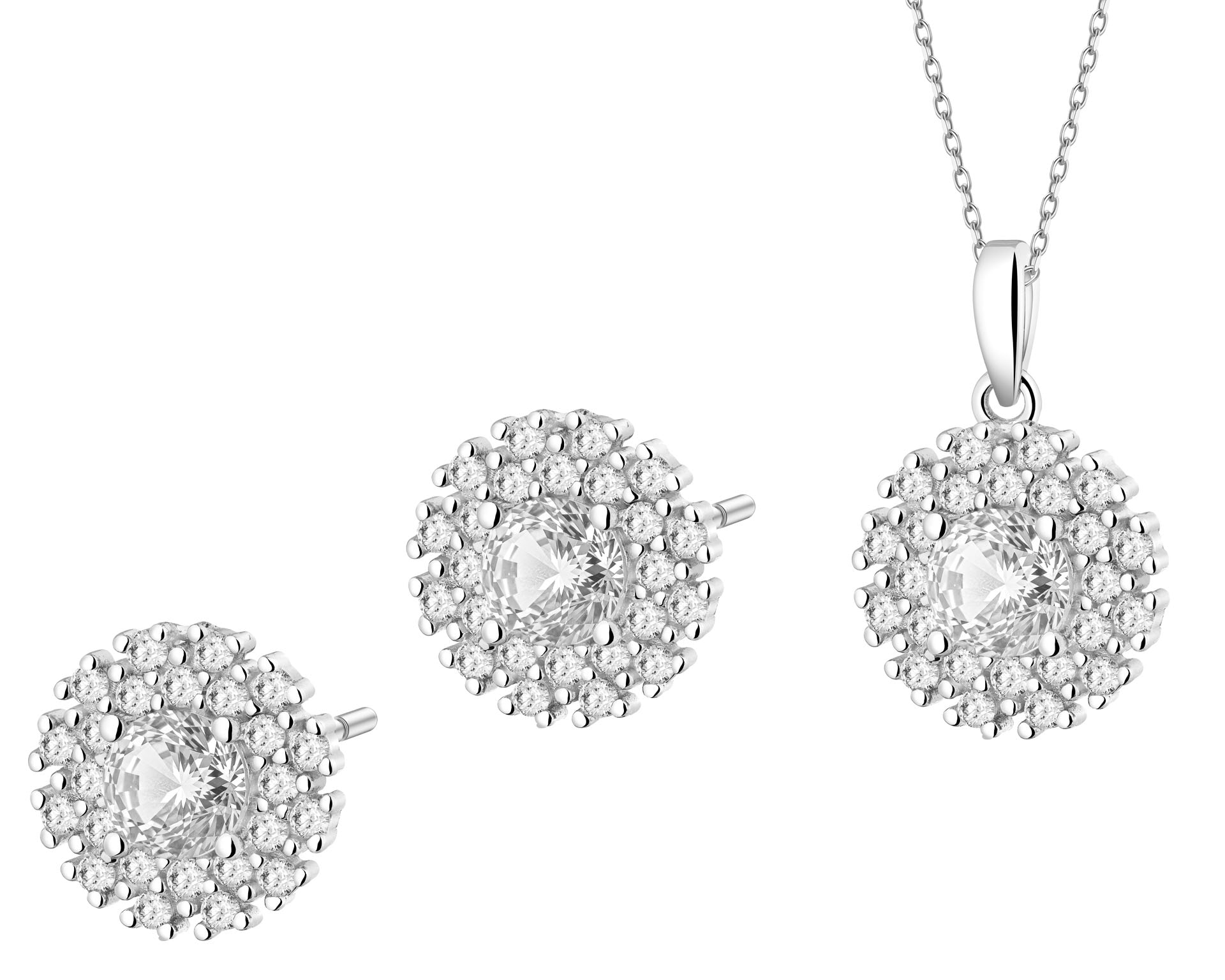 Srebrne kolczyki i zawieszka z cyrkoniami - komplet