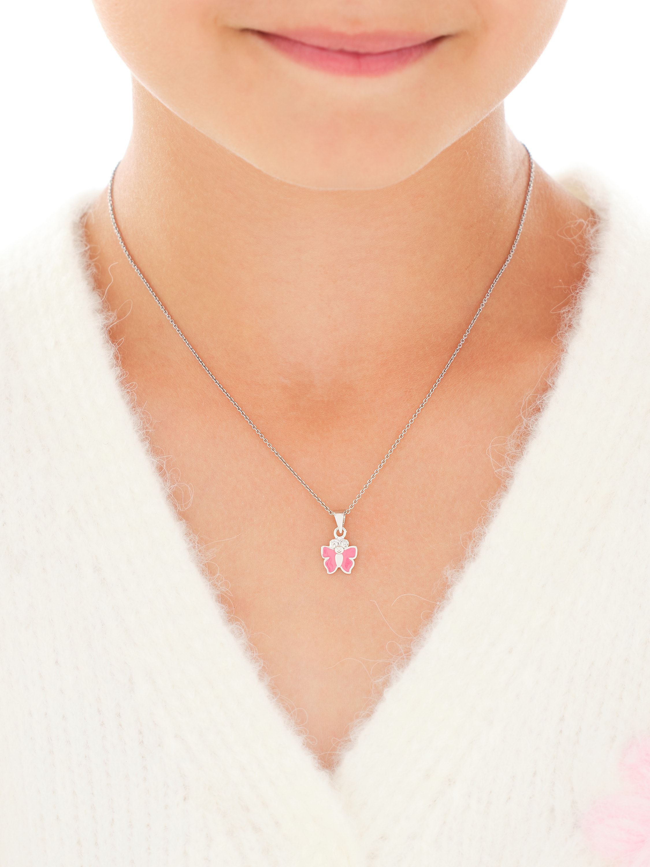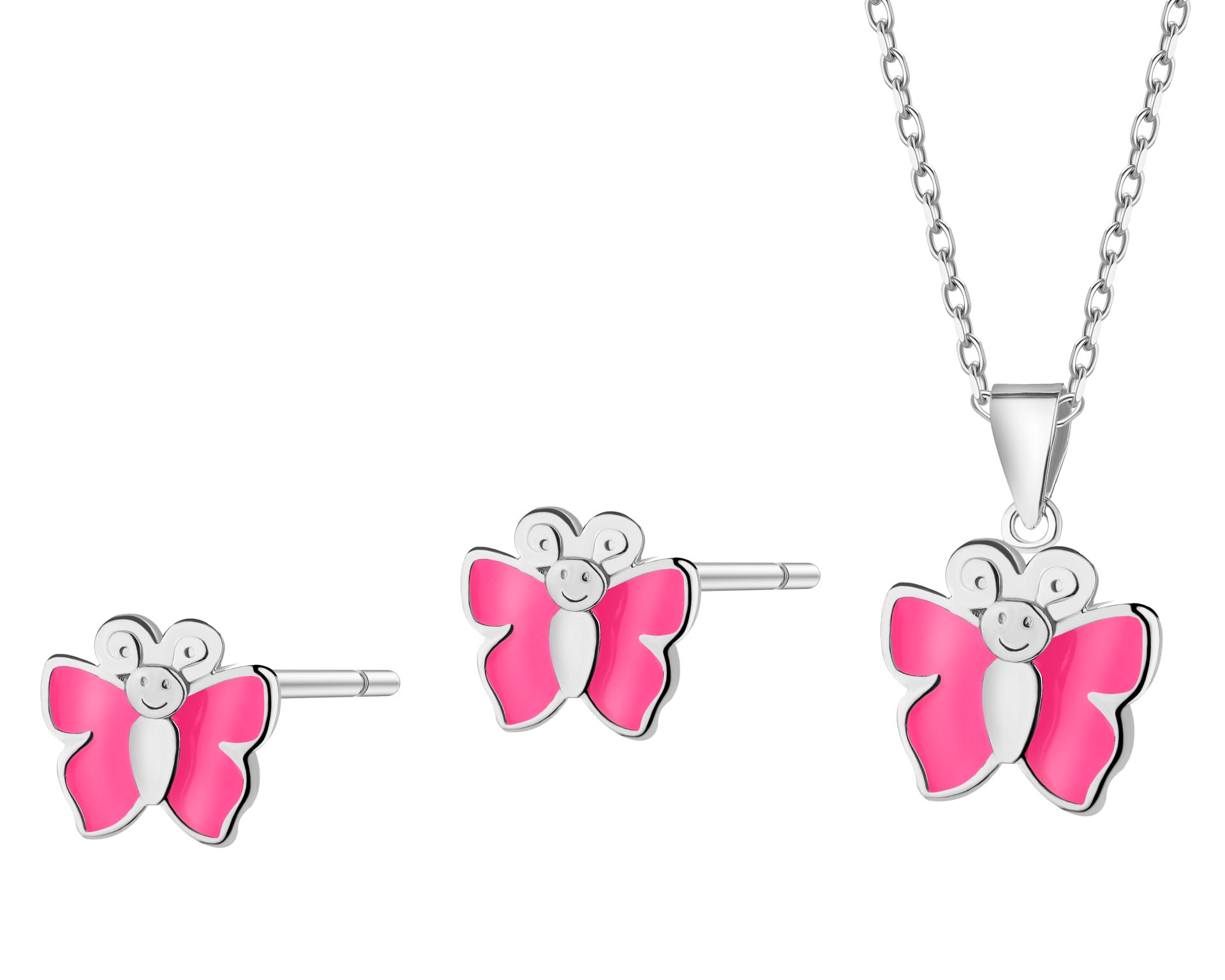 Srebrne kolczyki i zawieszka z emalią - komplet - motyle