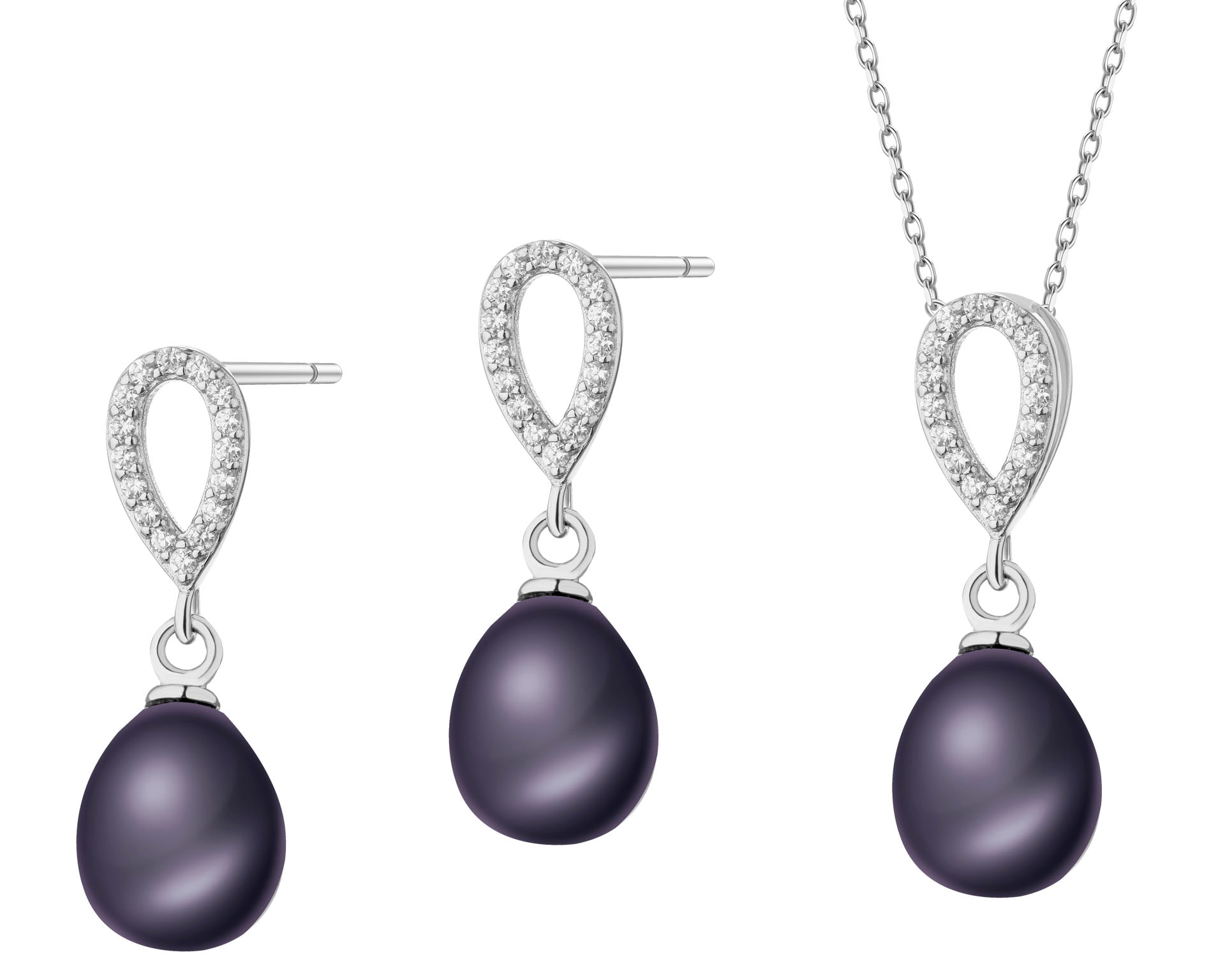 Srebrne kolczyki i zawieszka z perłami i cyrkoniami - komplet