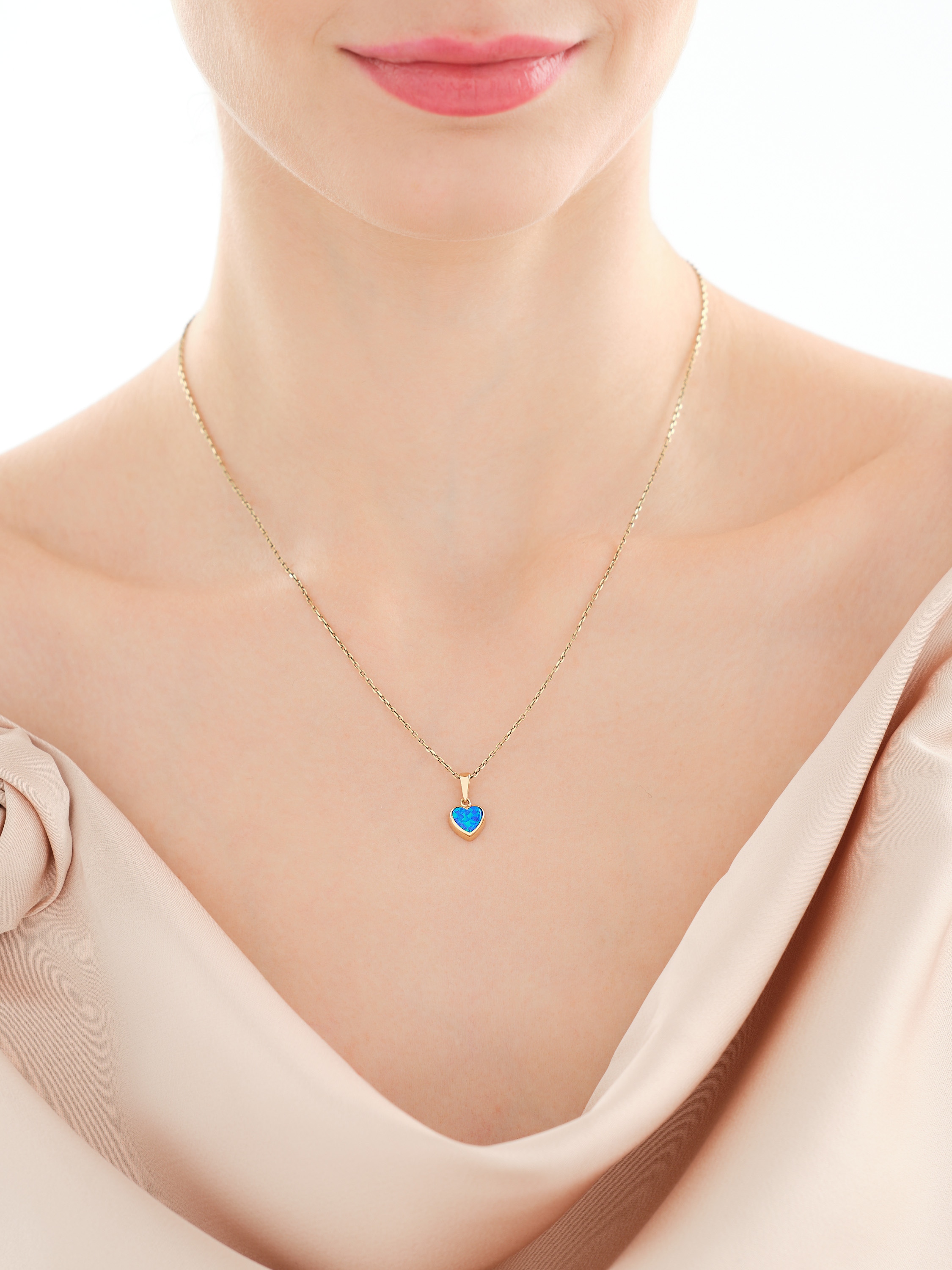 Złoty pierścionek z opalitem - serce