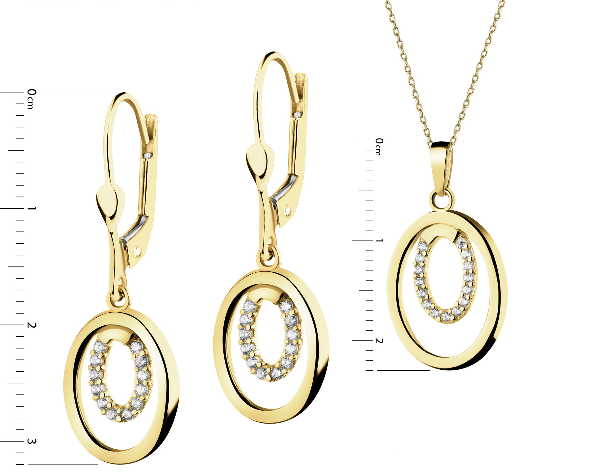 Złote kolczyki i zawieszka z cyrkoniami - komplet