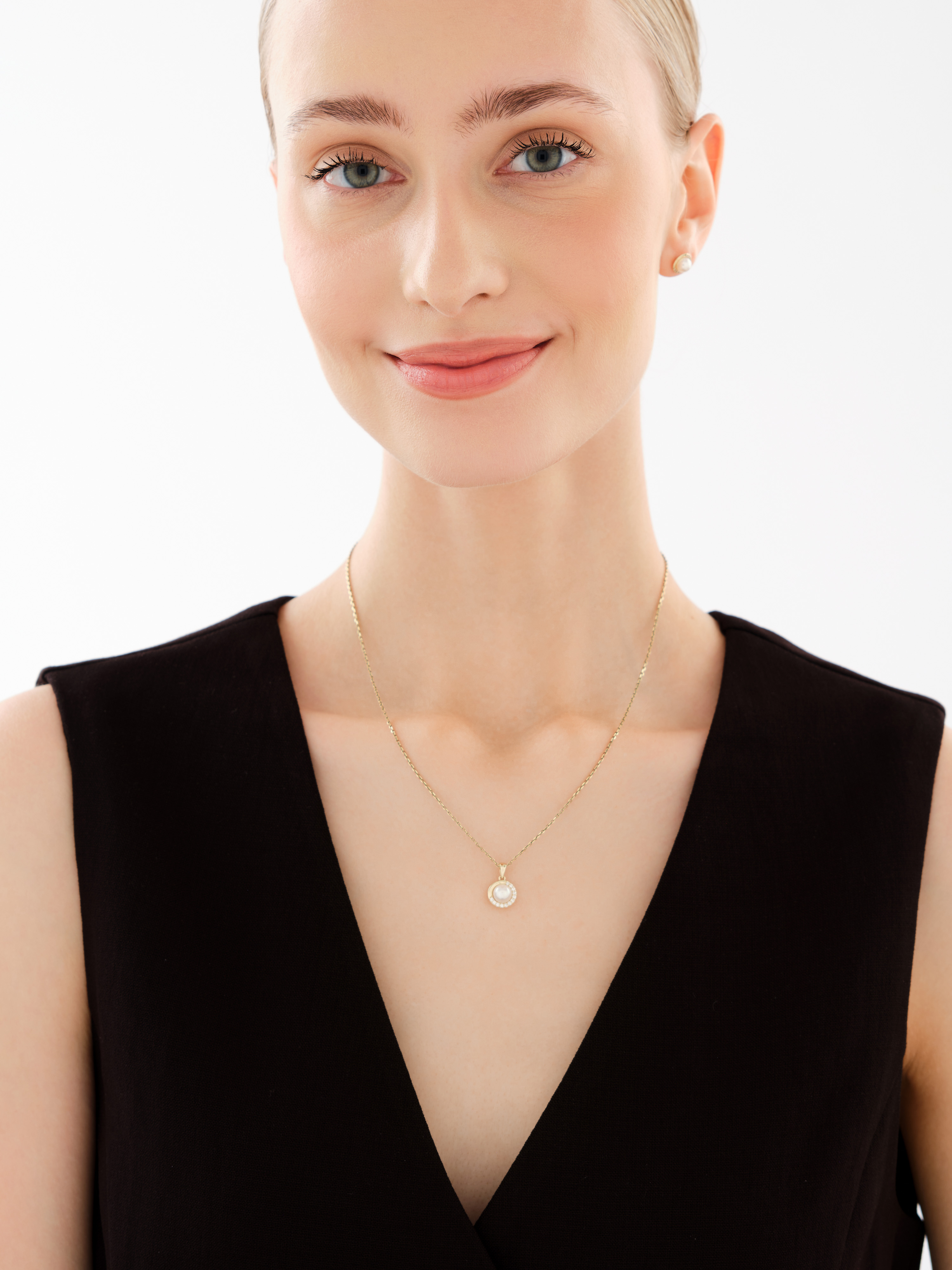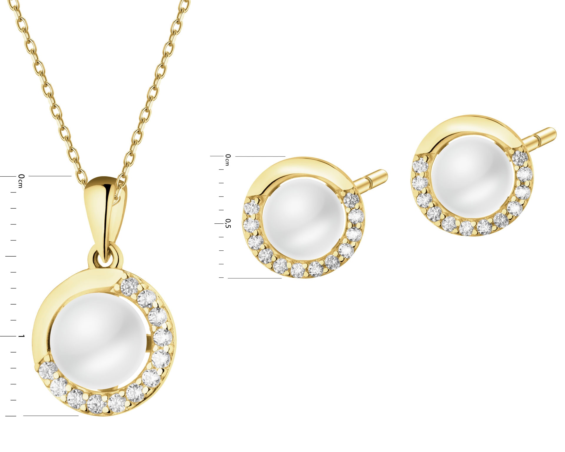 Złote kolczyki i zawieszka z perłami i cyrkoniami - komplet