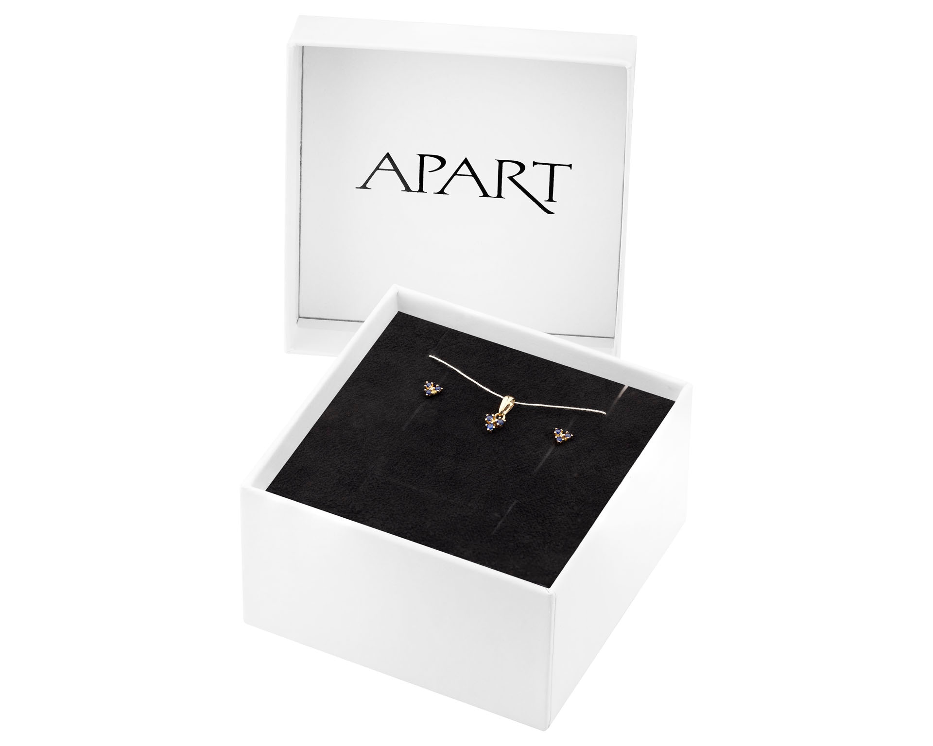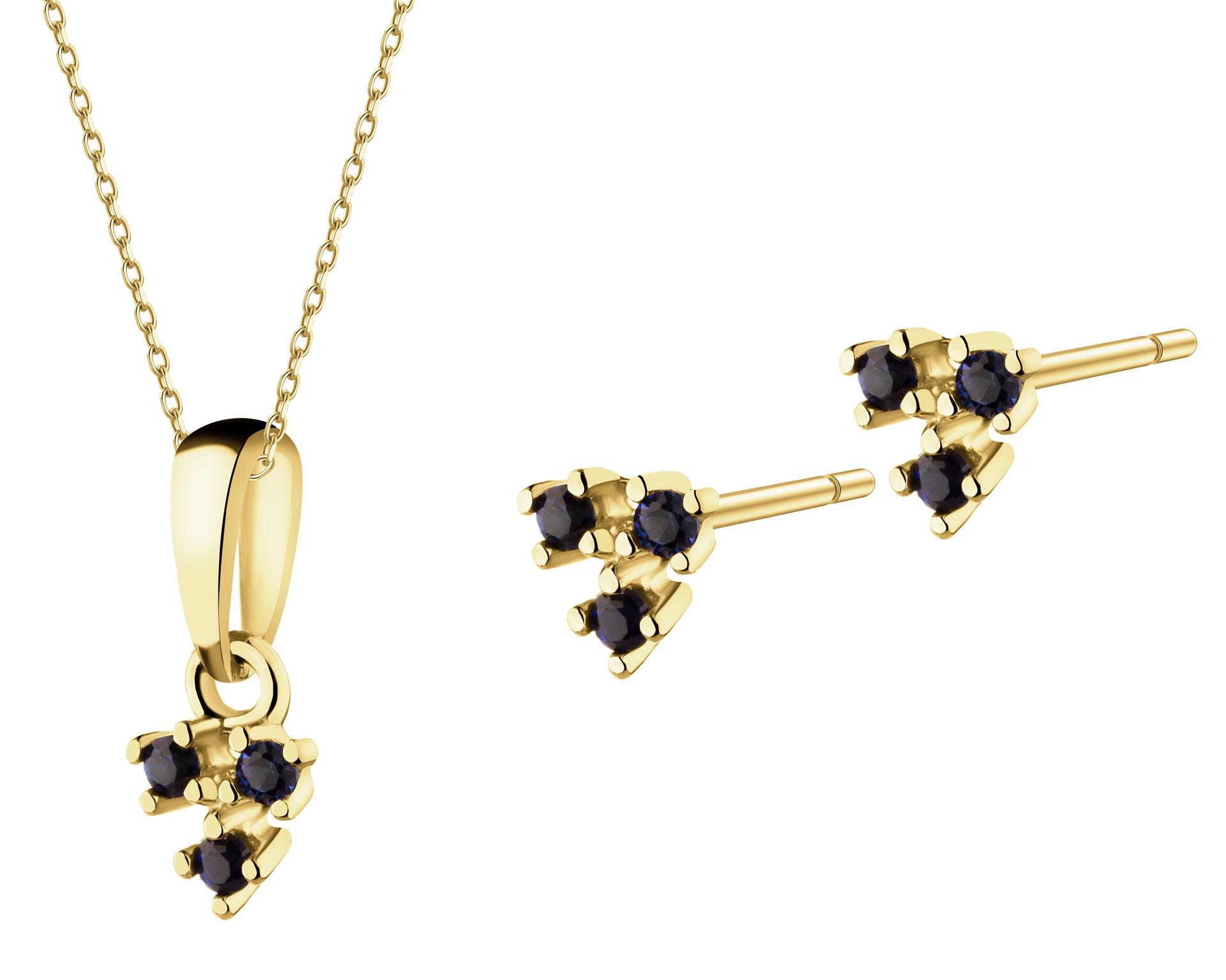 Złote kolczyki i zawieszka z szafirami syntetycznymi - komplet