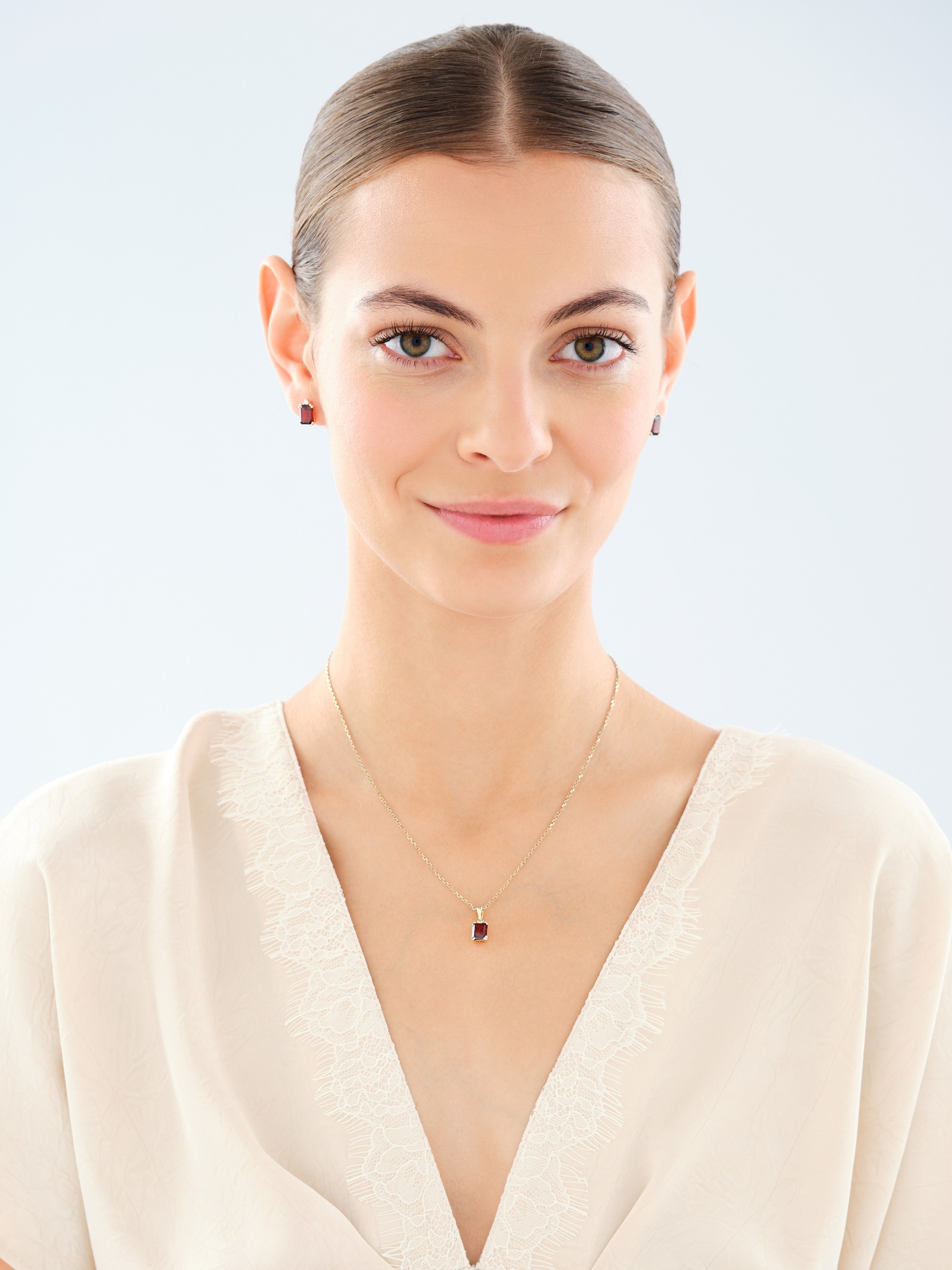 Złota zawieszka z granatem i cyrkonią