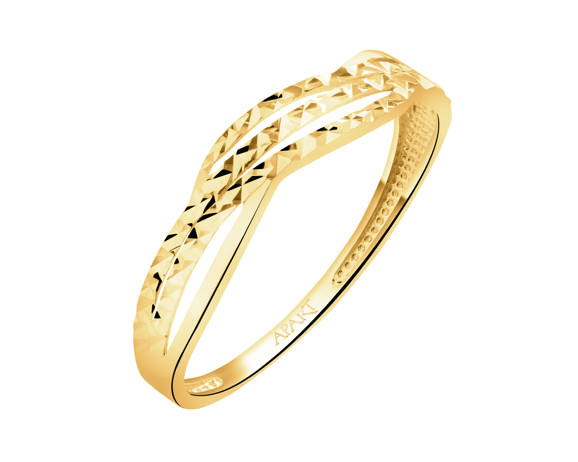 Kolekcja pierścionków Apart zachwyca nowoczesną, oryginalną stylistyką. Niebanalna, ale subtelna forma i zastosowanie różnokolorowych kruszców przyciągną wszystkie spojrzenia. Pierścionki o perfekcyjnym, opływowym kształcie, przywodzą na myśl splątane kręgi, synonimy wiecznej miłości i szczęścia...