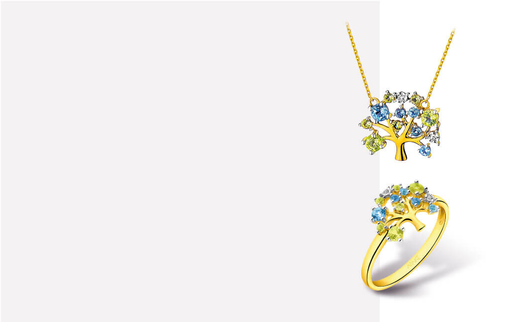 Topazy tworzą wspaniałe kompozycje nie tylko z diamentami, ale także z innymi kolorowymi kamieniami szlachetnymi. Taka złota biżuteria przyciąga wzrok wielobarwnymi refleksami w kunsztownej oprawie. W takich kolekcjach Apart, jak Kolory, Magic Crystals czy Colors of Life wzory zdobią topazy łączone z diamentami oraz cytrynami, ametystami, peridotami i innymi kamieniami. Wzory ze złota z drzewem życia, symbolizującym więzi rodzinne to wymarzony prezent dla żony z okazji narodzin dziecka, ważnych urodzin lub rocznicy.