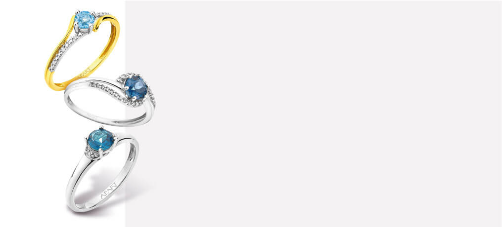 W ofercie Apart nie mogło zabraknąć topazów, szczególnie tych cenionych w jubilerstwie w odcieniach niebieskich. Klasyczne pierścionki z żółtego złota z diamentami i topazami to piękna biżuteria w ponadczasowym stylu. Jako pierścionek zaręczynowy z topazem i diamentami sprawdzą sie także wzory z białego złota. Szczególną uwagę przyciągają diamentowe pierścionki z topazami London Blue o głębokiej, nasyconej barwie. Wśród wzorów z kolekcji Apart są także bardziej oryginalne pierścionki z diamentami i topazami, których design docenią kobiety poszukujące nietuzinkowej biżuterii.