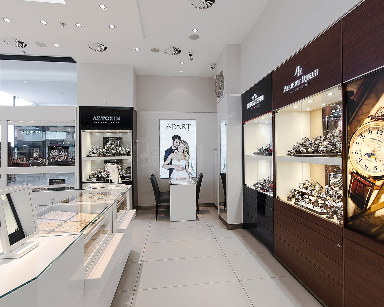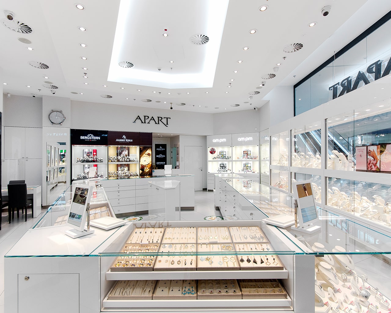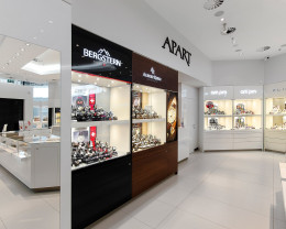 Apart Exclusive to najbardziej luksusowe salony Apart w Polsce. Klienci znajdą tu wyłącznie produkty ekskluzywne: biżuterię z diamentami i innymi kamieniami szlachetnymi oraz zegarkowe arcydzieła renomowanych szwajcarskich manufaktur.