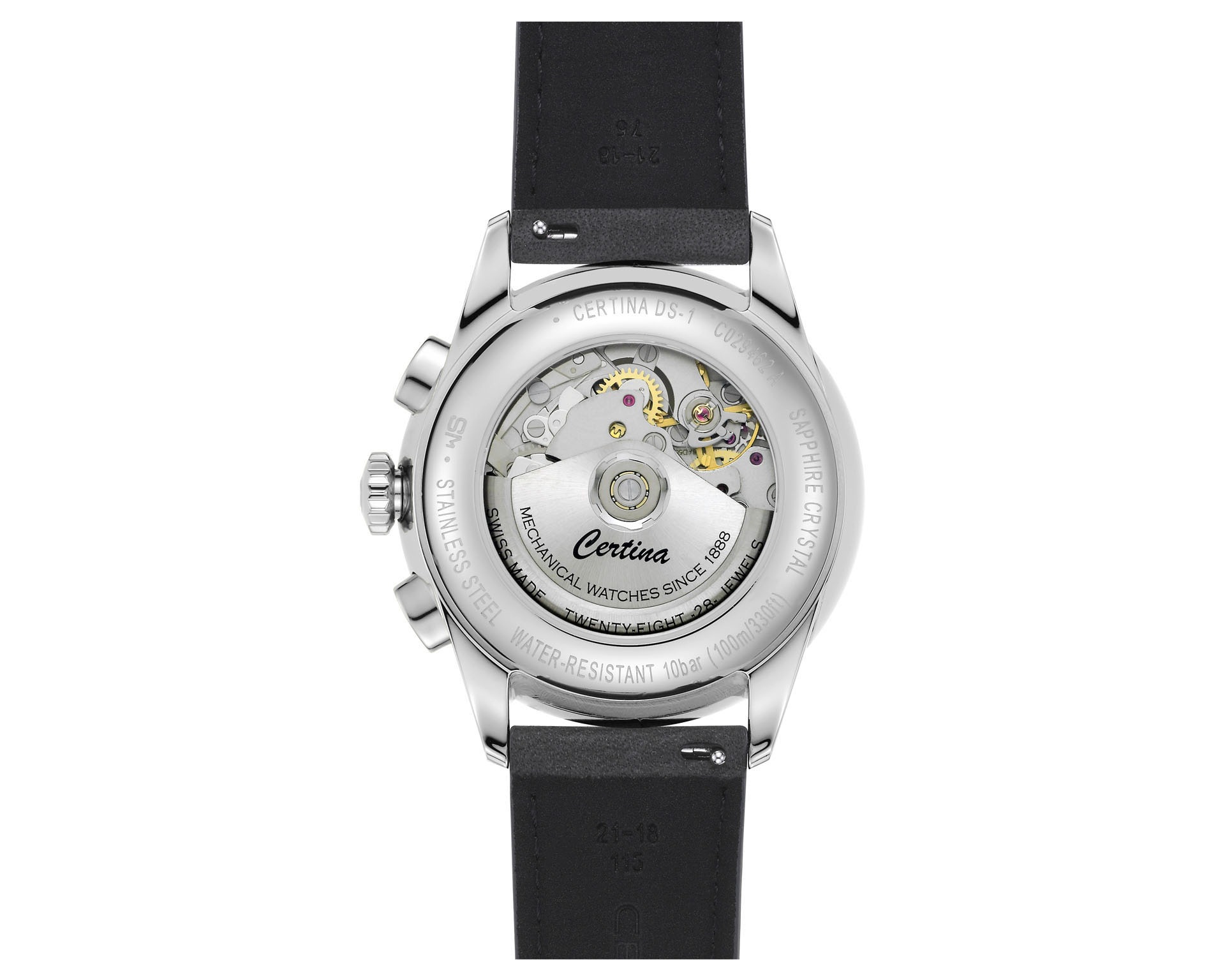 Marka Certina od ponad 135 lat łączy tradycję szwajcarskiego zegarmistrzostwa z nowoczesnością, tworząc zegarki, które imponują niezawodnością, wytrzymałością i stylem. To czasomierze, na których naprawdę można polegać – zarówno podczas codziennych wyzwań, jak i w ekstremalnych warunkach. Kluczowym wyróżnikiem marki jest wprowadzony w 1959 roku system Double Security (DS), który zapewnia wyjątkową odporność zegarków na wstrząsy i wodę, co czyni je idealnymi towarzyszami codziennych wyzwań – zarówno w miejskim otoczeniu, jak i podczas ekstremalnych wypraw. DS zrewolucjonizował świat zegarmistrzostwa, wyznaczając nowe standardy odporności i niezawodności. Dzięki zaawansowanym rozwiązaniom konstrukcyjnym – takim jak wzmocniona koperta, system amortyzacji mechanizmu czy złożony układ uszczelek. Certina konsekwentnie udoskonalała swoje mechanizmy, wzbogacając je m.in. o zaawansowany kaliber Powermatic 80 z antymagnetyczną sprężyną Nivachron™ oraz kwarcowy Precidrive®, który osiąga precyzję chronometru. Współczesna Certina to marka, która nie tylko zachowuje pełną zgodność ze standardem „Swiss Made”, ale także stale podnosi poprzeczkę pod względem innowacyjności i jakości.