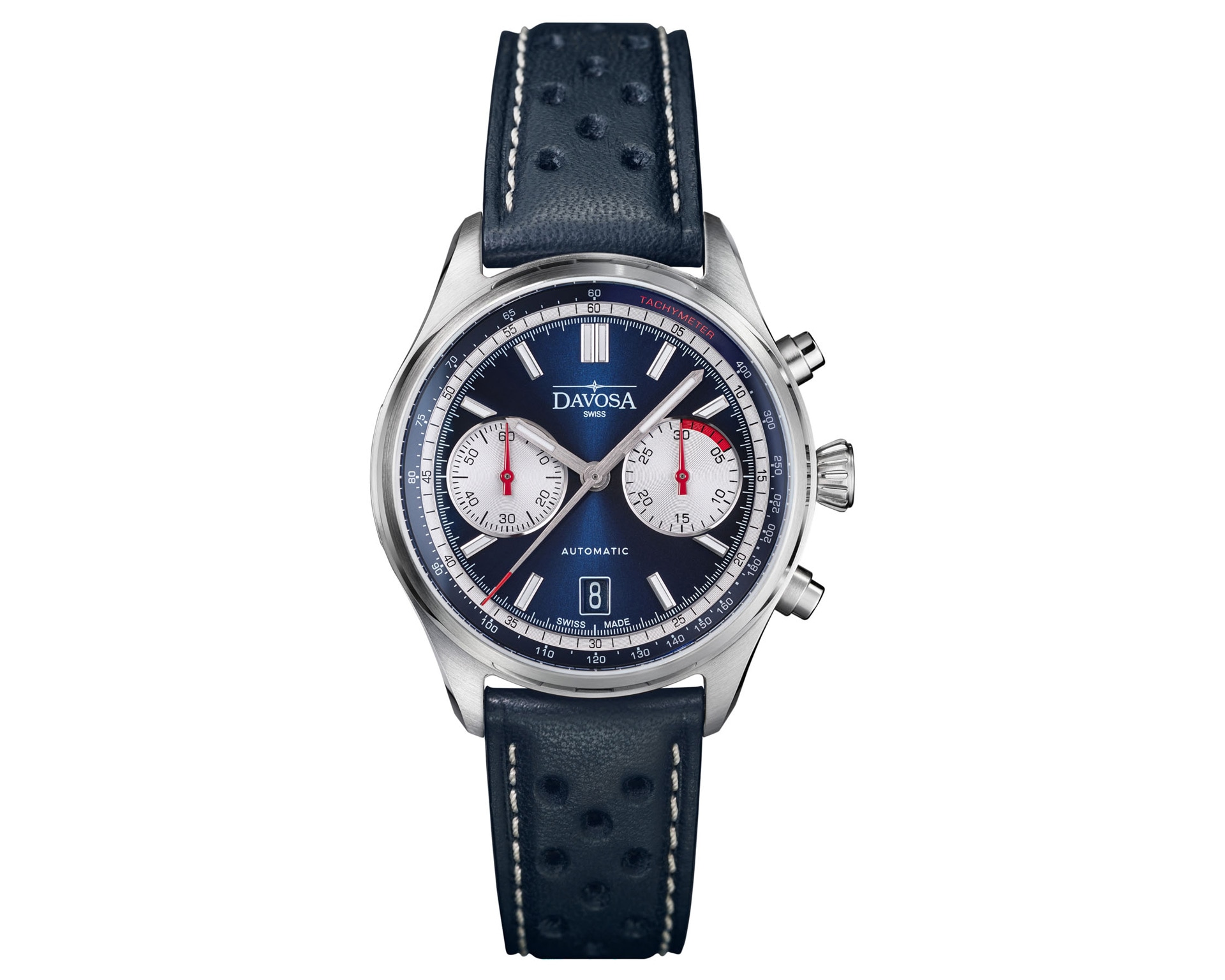 Cechy: chronograf, datownik, wskazówkowy, mały sekundnik, sekundnik, tachymetr