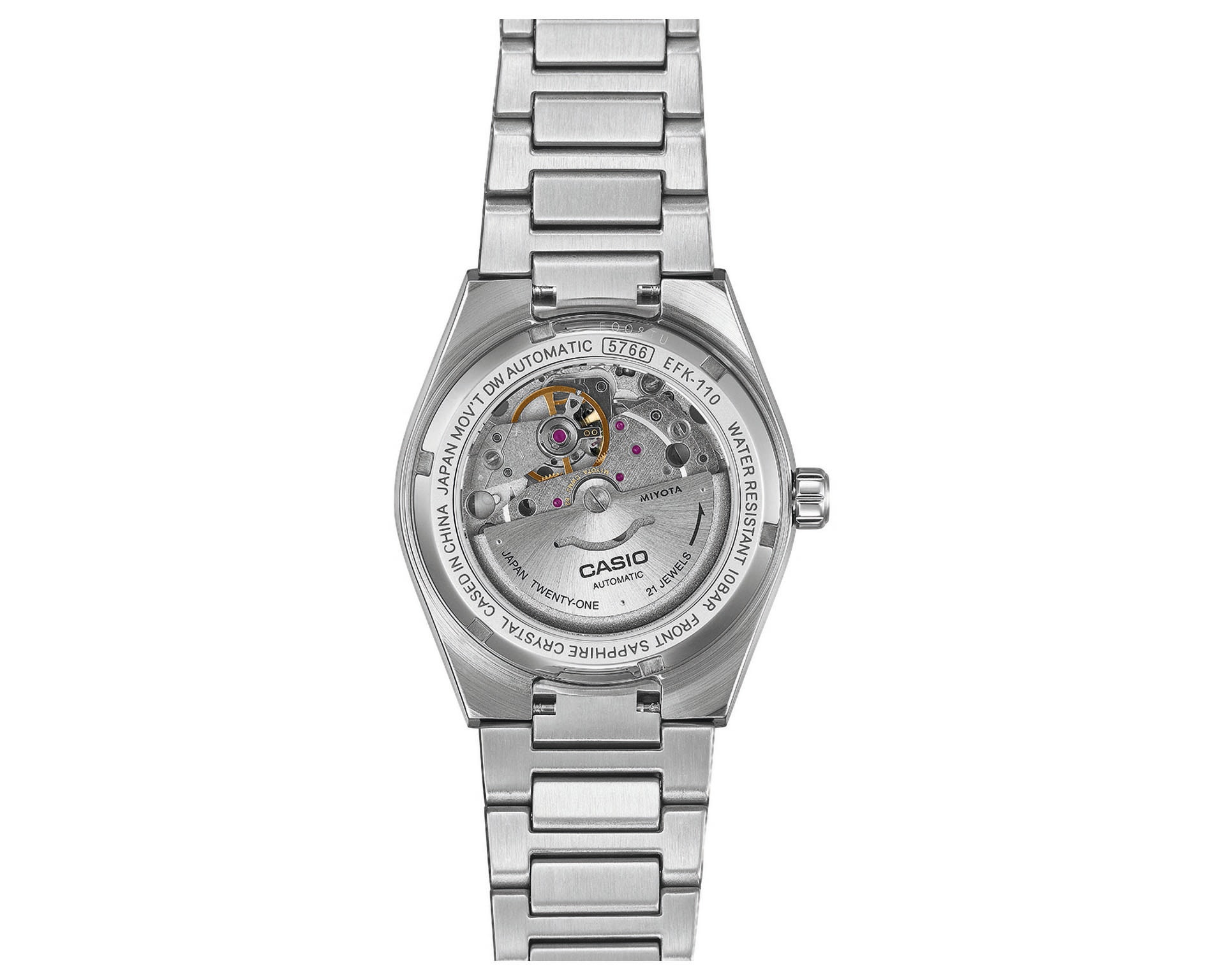 Casio Edifice Automatic to połączenie precyzji mechanicznego zegarka i sportowego ducha wyścigów. Zegarki z tej kolekcji mają koperty 39 mm, tarcze wykonane z zaawansowanego węglowego kompozytu stosowanego w luksusowych samochodach, oraz mechaniczną konstrukcję z 40-godzinną rezerwą chodu. Przez przezroczysty dekiel widać pracujący mechanizm, co podkreśla ich wyjątkowy charakter. Podniesione indeksy, starannie wyprofilowana koperta i bezel oraz szafirowe szkło podnoszą prestiż i elegancję zegarków. Wodoszczelność do 100 m pozwala łączyć codzienną funkcjonalność z pasją motoryzacyjną.