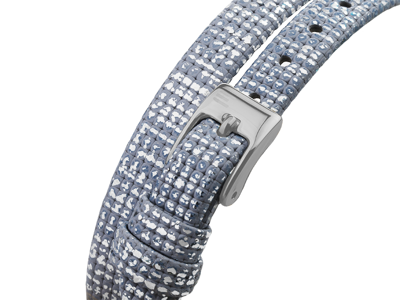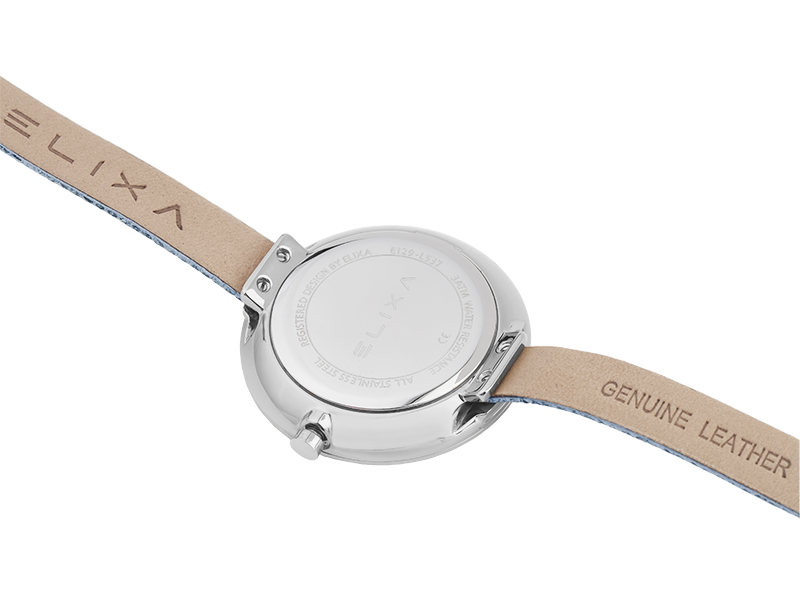Zegarek Elixa zaskakuje finezyjnym wykonaniem. Duża, okrągła koperta zamocowana na nietypowym skórzanym pasku, który dwukrotnie oplata nadgarstek, wygląda atrakcyjnie. Niezwykle efektownie prezentuje się także jasna tarcza, którą wykonano z masy perłowej i kryształów w dwóch kolorach. Uzupełnieniem jest kolorystyka modelu utrzymana w tonacji stali i błękitu. Doskonale będzie się komponował z Twoimi ulubionymi, casualowymi koszulami. Łącz go także w indywidualne zestawy dodatków z biżuterią ze srebra lub stali o filigranowych kształtach. Precyzję odmierzania czasu zapewnia wysokiej jakości kwarcowy mechanizm.
