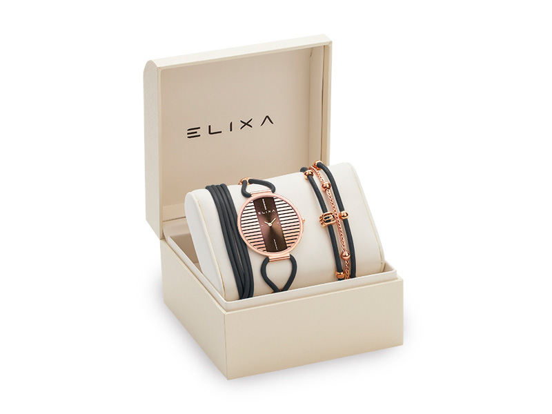 Elixa to marka, która w idealny sposób łączy nowoczesny design z modowymi trendami, tworząc projekty dla kobiet przebojowych, odważnych i ceniących niebanalne dodatki. To spojrzenie marka urzeczywistnia zarówno w projektach biżuterii, jak i zegarków. Z jednej strony to aktualne tendencje, z drugiej twórcy marki składają hołd kobiecości – barwnej, różnorodnej, intrygującej.