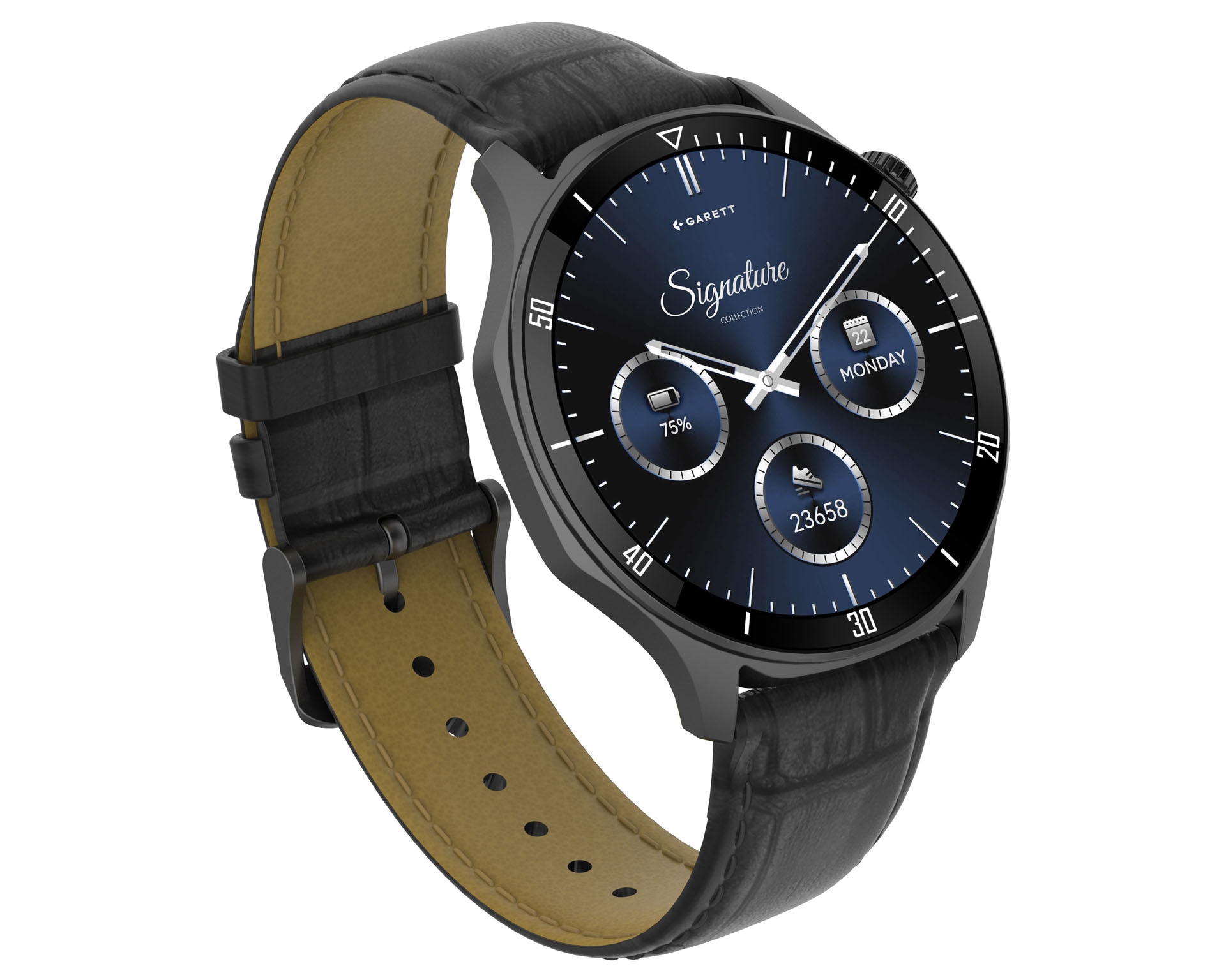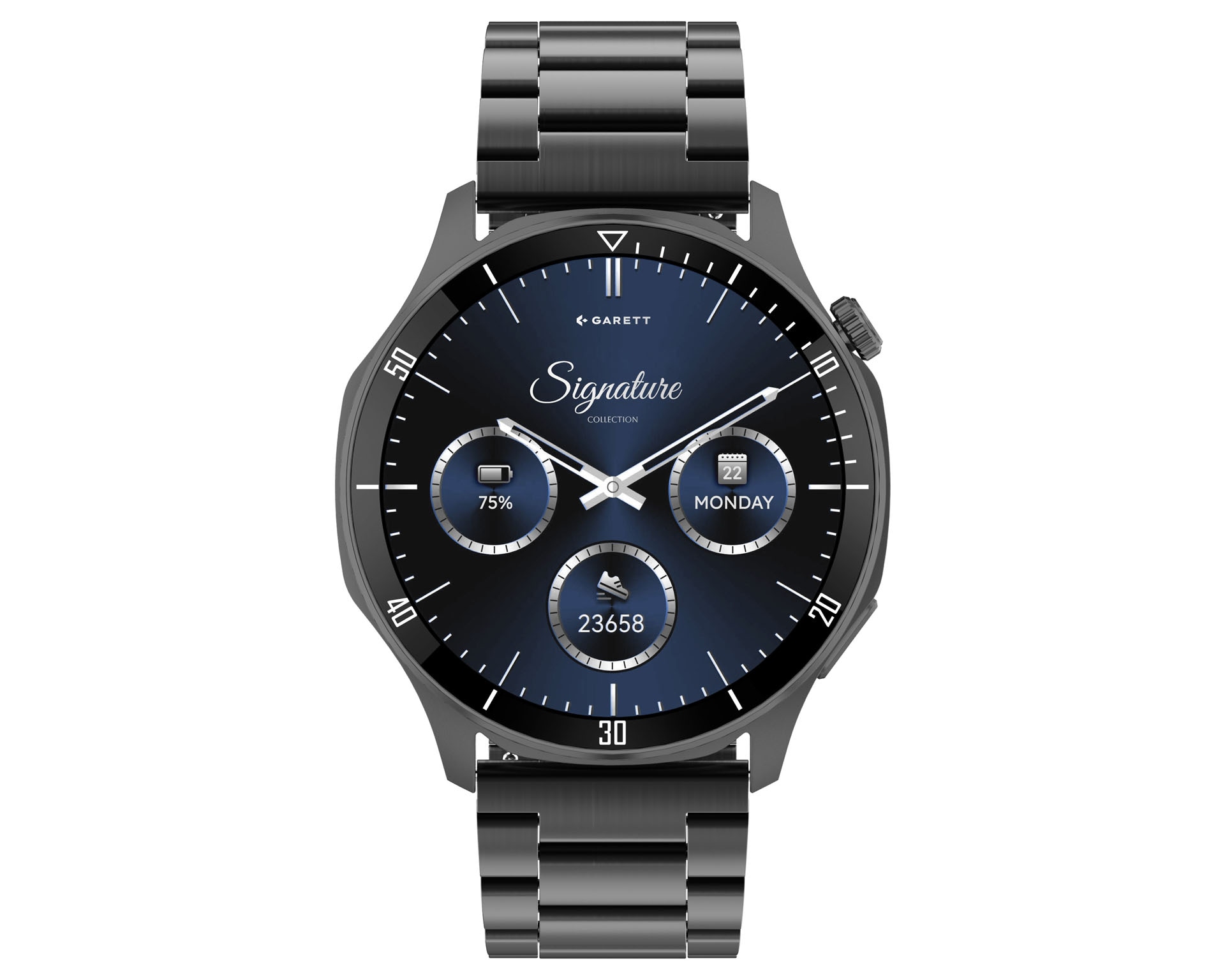Cechy: datownik, alarm, bluetooth, kalkulator, podświetlenie tarczy, stoper, wskaźnik dnia tygodnia, wskaźnik zużycia baterii