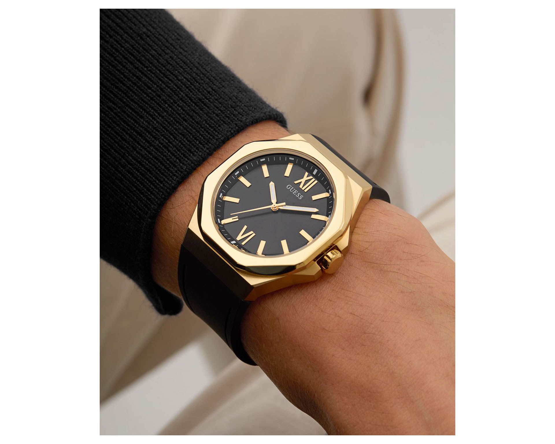 GUESS to dzieło czterech urodzonych i wychowanych w Marsylii braci: Maurice’a, Armanda, Georges’a i Paula Marciano. Pod koniec lat 70. wyemigrowali do Kalifornii, w której w 1981 roku założyli swoją markę. Znakiem rozpoznawczym GUESS jest połączenie francuskiej elegancji i amerykańskiego luzu, klasyki i podążania za najnowszymi trendami.