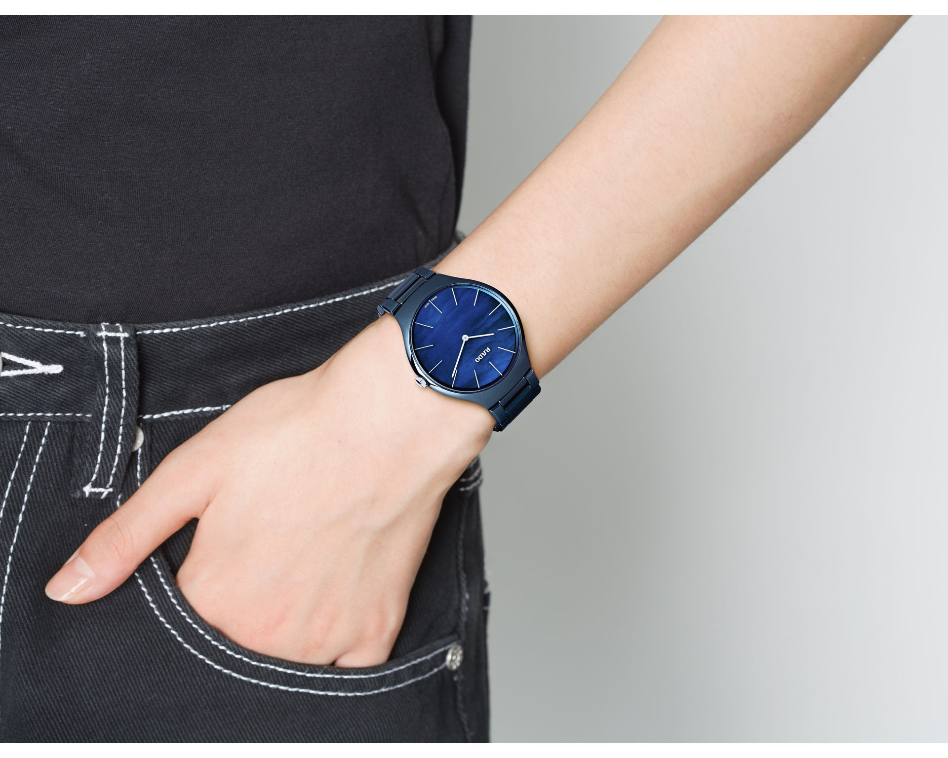 Rado True Thinline to najcieńsze zegarki w ofercie marki, wprowadzone w 2011 roku. Wyposażone w innowacyjną jednoczęściową kopertę typu monobloc z ceramiki high-tech, zachwycają ultralekką konstrukcją i wyjątkowym komfortem noszenia. Mimo swojej smukłości, zachowują pełną wytrzymałość i odporność na zarysowania. Każdy zegarek Rado True Thinline to przykład nowoczesnego designu połączonego z funkcjonalnością.