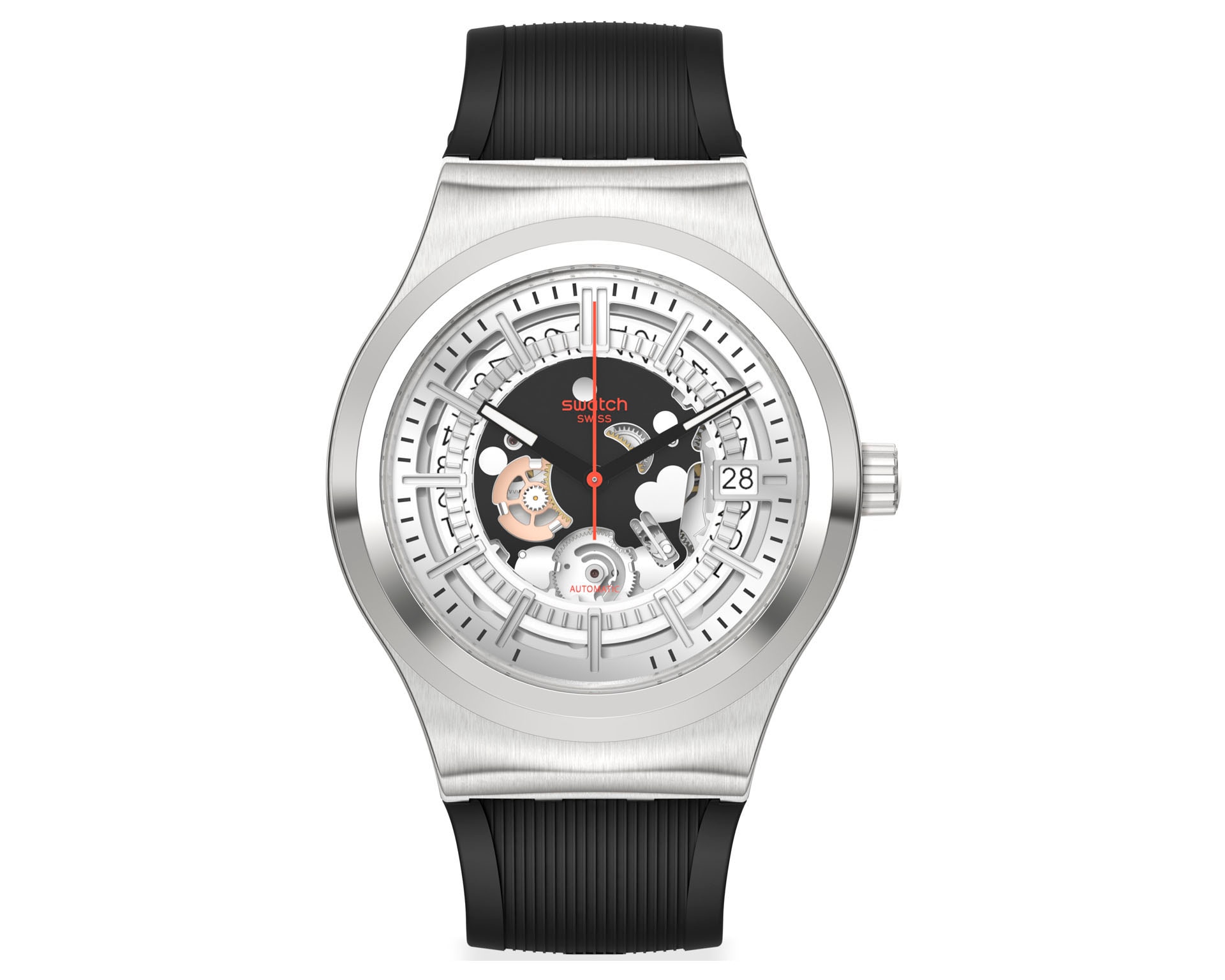 Marka SWATCH to pozytywna prowokacja i radość życia ze szwajcarskim rodowodem: Swatch rewolucjonizuje branżę zegarków nieprzerwanie od dnia swojego powstania w 1983 roku. Dzięki wyrazistym wzorom, które zawsze odzwierciedlają ducha czasu, Swatch jest jednym z wiodących producentów zegarków i jedną z najbardziej poszukiwanych marek na świecie - taką, która zawsze pozostaje wierna sobie. Marka nie przestaje zaskakiwać, zarówno poprzez regularnie wypuszczane nowe modele jak i rozmaite kolekcje specjalne. Rewolucyjny sposób, w jaki Swatch myśli i działa, był widoczny od początku: marka szybko zaangażowała się w sporty akcji, takie jak BMX, jazda na deskorolce czy surfing. Swatch Art Peace Hotel w Szanghaju świadczy natomiast o zamiłowaniu marki do sztuki, tworząc miejsce spotkań artystów z całego świata.