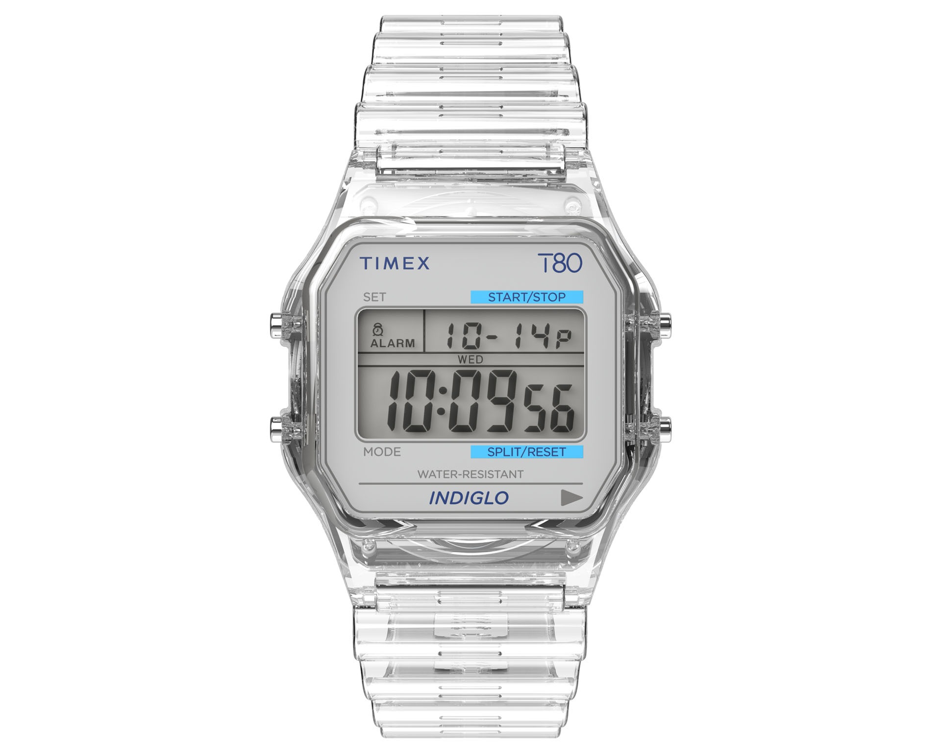 Kolekcja Timex T80 to współczesna odsłona kultowego cyfrowego zegarka, która łączy ducha lat 80. z nowoczesnym stylem. Wyraziste kolory i metaliczny połysk nadają jej energii i optymizmu, a funkcje takie jak alarm, stoper, datownik, podświetlenie INDIGLO® i wodoszczelność do 30 m zapewniają pełną funkcjonalność. Dostępne są wersje na elastycznym pasku w intensywnym gradiencie lub klasycznej stalowej bransolecie w odcieniu srebra bądź złota — zawsze z charakterem i pozytywną energią.