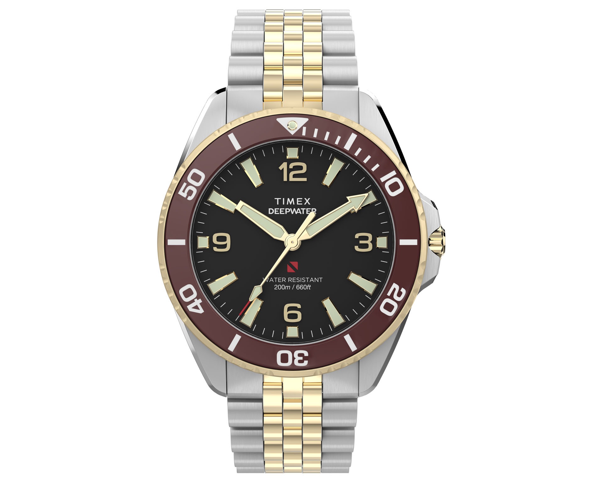 Zegarki z kolekcji Timex Deepwater łączą wytrzymałość profesjonalnego sprzętu z elegancją klasycznego designu. Stworzone, by sprostać ekstremalnym warunkom, oferują wodoszczelność do 200 metrów, szafirowe szkło z powłoką antyrefleksyjną oraz luminescencyjne wskazówki i indeksy, które gwarantują doskonałą czytelność pod wodą. Charakterystyczna falista tarcza i wytrzymały gumowy pasek nadają im sportowego charakteru, a stalowa koperta z zakręcaną koronką i deklem zapewnia niezawodność w każdych warunkach. Timex Deepwater to zegarki stworzone dla tych, którzy szukają połączenia funkcjonalności, odwagi i ponadczasowego stylu.