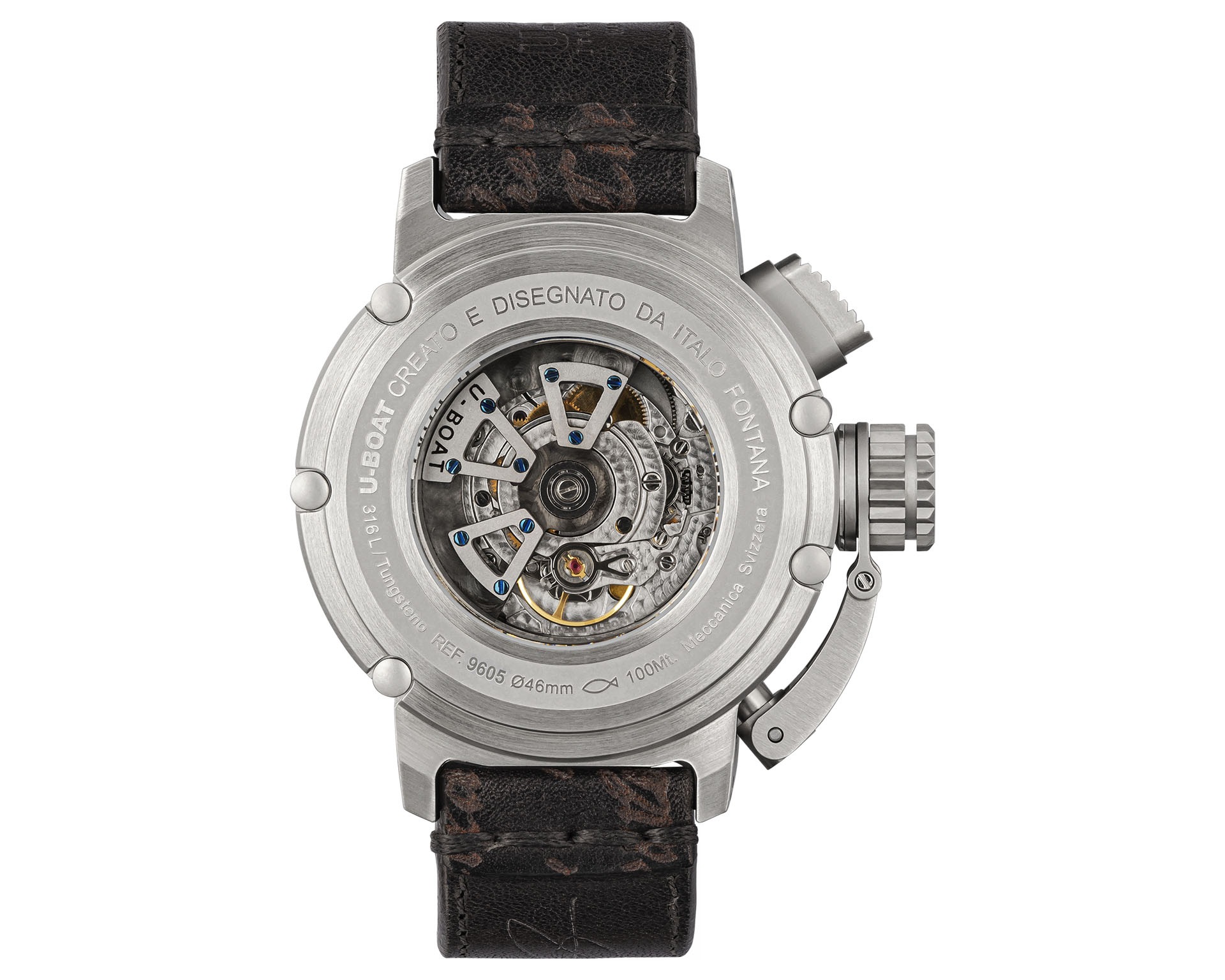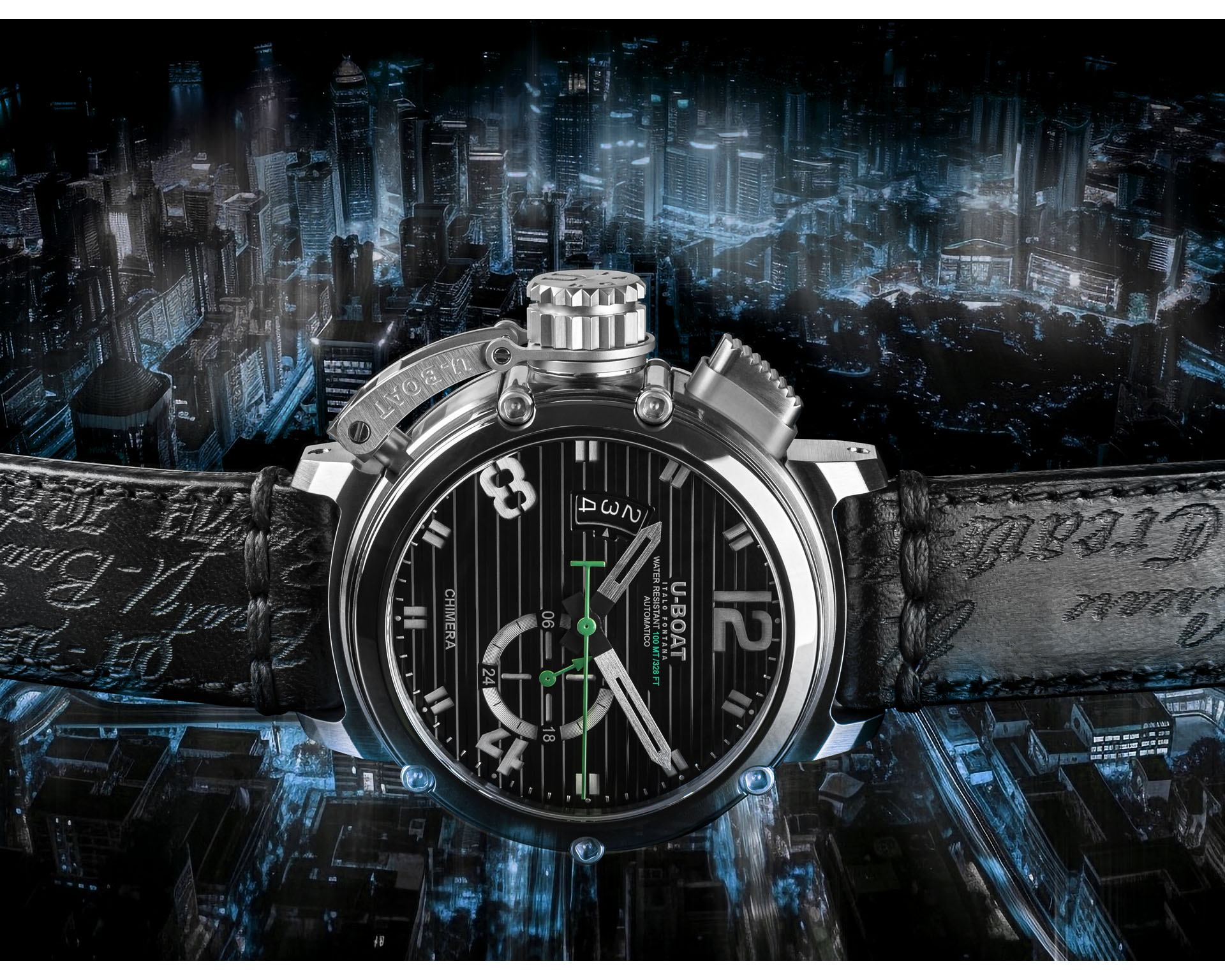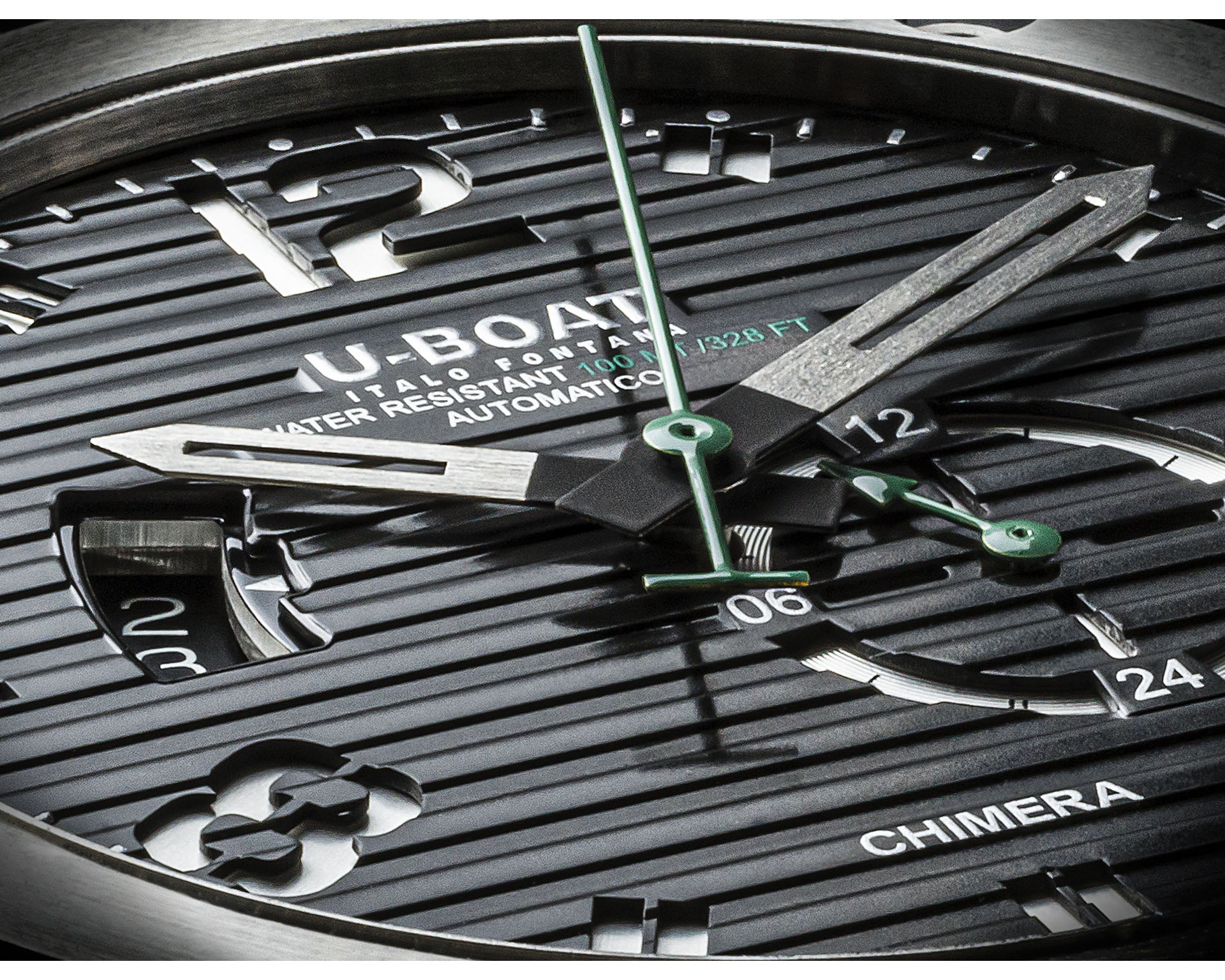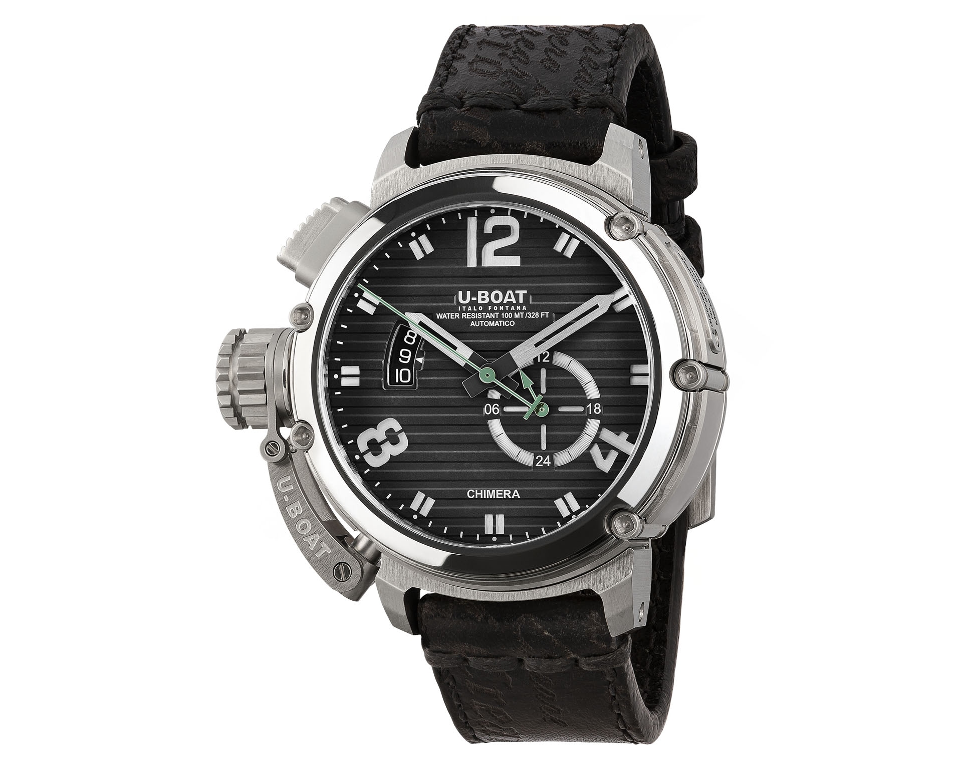 U-Boat Chimera to esencja charakteru marki – masywna, 46-milimetrowa koperta ze stali 316L, unikalna osłona koronki i mocna, geometryczna forma podkreślają jej niepowtarzalny styl. Czasomierze napędza szwajcarski mechanizm automatyczny ETA 2824, widoczny przez przydymione szkło mineralne. Nowa tarcza o prążkowanej fakturze nadaje jej głębi, a opatentowany system zwalniania koronki zapewnia łatwą regulację czasu i daty. Całość dopełnia ręcznie wykonany w Toskanii pasek ze skóry cielęcej o postarzanej fakturze. Limitowana edycja 300 sztuk.